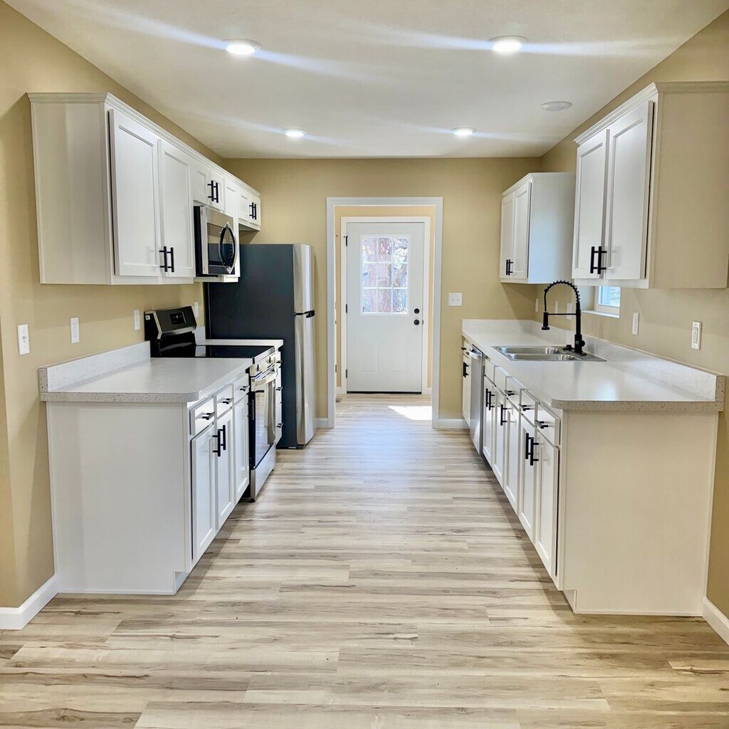 Step into something brand new! Be the first to live in this stunning newly constructed 3-bedroom, 2-bath home—ready for immediate move-in! From the moment you walk in, you’ll love the bright, open-concept layout, stylish vinyl plank flooring, and modern finishes throughout. The kitchen is a true showstopper, featuring sleek stainless steel appliances, generous counter space, and plenty of cabinetry—perfect for cooking, entertaining, or both. Each bedroom is filled with natural light and includes spacious custom closets, while the two full bathrooms offer both convenience and comfort with a walk-in shower and a tub/shower combo. Enjoy your mornings on the charming covered front porch and unwind or entertain on the back deck during warm summer evenings. With central air and heat, plus full-size washer and dryer hookups, this home checks every box. Schedule your tour and lock it in before it’s gone!