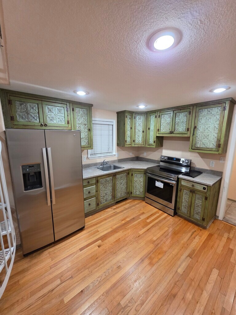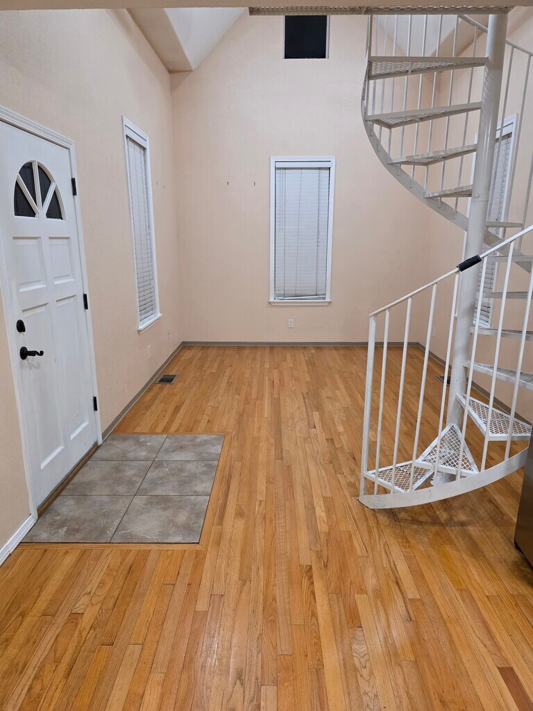 This is a cozy 1 bedroom plus loft apartment with nice amenities such as new stainless steel refrigerator, stove and washer/dryer, refrigerated central air, nice real wood flooring, bespoke, rustic kitchen cabinets, a spiral staircase leading to a loft, a high ceiling in the living room, and a small personal gardening plot. This apartment is part of an addition (2008) to a home built in 1901. The apartment is in the back of the building, off the street. Located near Broadway and Gold in East Downtown, it is within walking distance of several popular restaurants, bars, and other businesses. The apartment is wired with Xfinity cable, high speed fiber internet to the apartment is available through AT&T. Utilities (electric, gas, water and waste) are included in the rent.