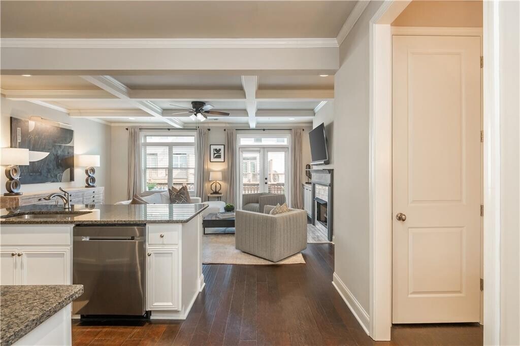 Immaculate townhome located in a desirable gated community in Smyrna. LOCATION! Enjoy unbeatable convenience with easy access to I-285 and I-75,and just minutes from Smyrna Market Village,Vining’s Jubilee,the Battery,popular dining,shopping,and the Silver Comet Trail. Perfectly positioned on a quiet corner lot,this home offers exceptional privacy and serene surroundings near a peaceful wooded area and private park. Award winning King Springs Elementary School. Inside,you will find an abundance of natural light and thoughtfully curated designer finishes throughout. Features include brand new paint throughout,newer wide plank hardwood floors throughout,coffered ceilings,custom lighting,upgraded electrical elements,and built-in closet systems for optimal organization. The chef’s kitchen is a true centerpiece,showcasing elegant custom white cabinetry,a stunning granite island and countertops,walk-in pantry,and premium stainless steel appliances. The same elevated finishes continue into each full bathroom,creating a cohesive and luxurious feel. Newer Washer and Dryer to stay with home. The spacious owner’s suite offers vaulted ceiling,a spa inspired bathroom with a frameless glass shower and extremely spacious walk-in closet. A versatile terrace level suite with a private bedroom and full bath provides the perfect space for guests,a home office,or a fitness area. With three levels,three large bedrooms,and three and a half bathrooms,and two-car garage,this home also features a rear deck with fire pit to stay for tenants and a charming covered front porch,ideal for relaxing or entertaining. Located within walking distance to Tolleson Park,residents can enjoy access to a swimming pool,tennis courts,playground,ball fields,and scenic walking trails. This home has been meticulously designed and lovingly maintained,and is now ready to welcome all. Come experience comfort,style,location,and convenience all in one place. This home offers tons of storage space. Some furnishings negotiable to stay with tenants. Don't miss out on this incredible opportunity! MLS ID 7755940