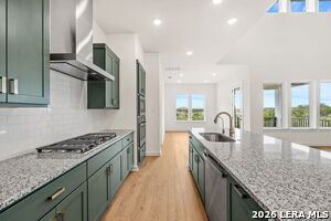 Located in the highly sought-after Wolf Ranch community, this 5-bedroom, 3-bathroom home offers 2,653 square feet of well-designed living space on a quiet cul-de-sac with exceptional canyon views. Built by Tri Pointe Homes, the Garner floor plan combines functionality, space, and comfort. The main level features an open-concept layout with a spacious living area that flows into the kitchen and dining space, ideal for everyday living and entertaining. The owner's suite is conveniently located on the first floor, along with an additional bedroom and full bath, offering flexibility for guests, a home office, or multigenerational living. Upstairs includes three additional bedrooms, a full bath, and a secondary living area, providing separation and room to spread out. This home also offers abundant storage throughout, making organization effortless. Step outside to a large covered patio overlooking a 40-foot elevated foundation, delivering some of the best canyon views in Georgetown. The setting offers both privacy and a peaceful backdrop to enjoy morning coffee or unwind in the evenings. Situated as one of the only occupied homes on the cul-de-sac, this property provides a unique sense of quiet and space. Residents of Wolf Ranch enjoy access to resort-style amenities, walking trails, green spaces, and convenient proximity to shopping, dining, and top-rated schools.