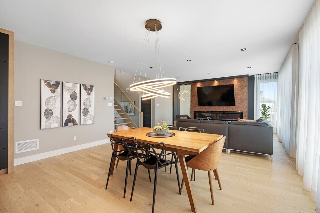 Located in a sought-after area of Saint-Eustache, this elegant Newtown-style home blends design, comfort, and brightness. Featuring three spacious bedrooms, two full bathrooms, an open-concept living area, and an independent laundry room. The fully finished basement offers a 3½ intergenerational suite with private entrance. Private backyard with heated saltwater pool, double garage with EV outlet, and central heat pump. Near the future REM, hospital, schools, and services. A modern home combining prestige, tranquility, and an exceptional quality of life.