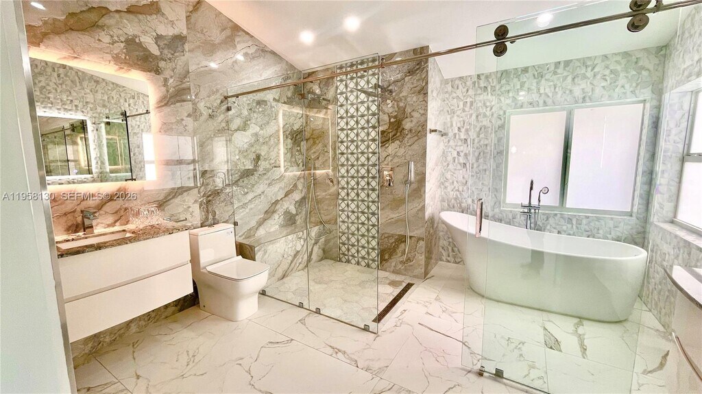 Roberto AzuaThis beautiful home has just been fully renovated. It features new windows and doors, stunning porcelain tile floors, and a modern kitchen with designer lighting and an exhaust hood. The residence offers a total of five bedrooms: four on the upper levels and one on the lower level, ideal for hosting guests or extended family with their own private space. The property also includes a gorgeous bathroom with a soaking tub and a striking glass staircase. All appliances are brand new. Owner financing is available. Contact us today for a viewing before this opportunity is gone.