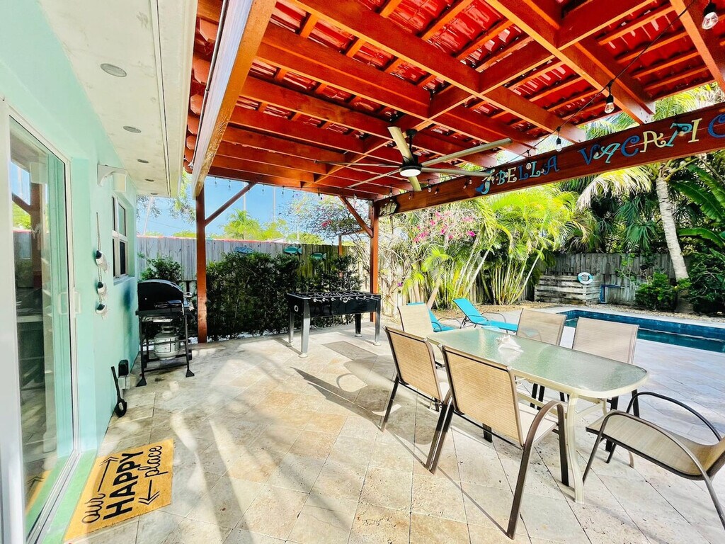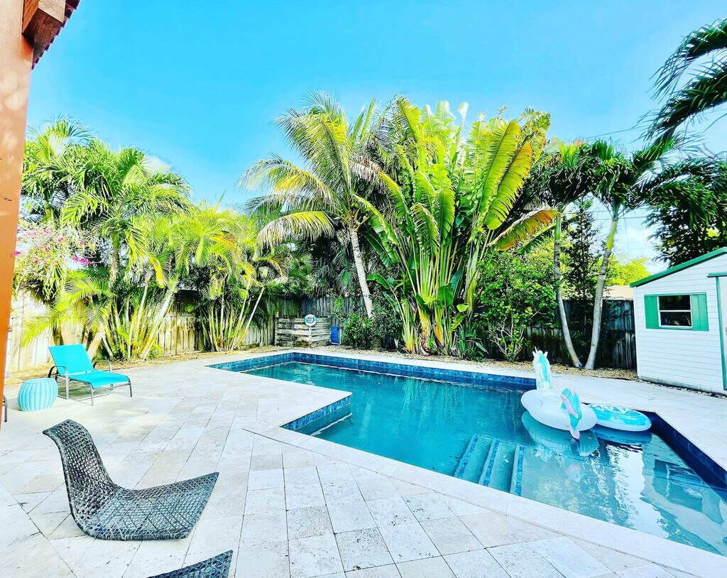 Feel at home in this stylish and family-friendly 2-bedroom home in Dania Beach. This home is designed for comfort and fun. Designed for short-term or long-term stays, this home offers a resort-style backyard, multiple dining areas, and a fully equipped kitchen with a fridge, stove, microwave, coffee maker, toaster, blender, and basics. For relaxation and entertainment, there is a Smart TV with streaming apps, free high-speed Wi-Fi, life-size games, inflatables for the pool, and a comfortable sofa. Pets are welcome with an additional charge for each pet. Located in a prime location, this home is just 5 minutes from Hollywood North Beach Park and Dania Pointe, 6 minutes from Frost Park and the Welcome to Dania Beach Sign, 10 minutes from Dania Beach Pier and Anne Kolb Nature Center, 14 minutes from Hollywood Broadwalk and Las Olas nightlife, and 6 minutes from Fort Lauderdale Airport. You can walk or drive to Tarks of Dania Beach & The Fish Grill in 3 minutes, West Lake Park, Pizza Hut, and Starbucks in 5 minutes, North Beach Park, Quarterdeck, and Secret Woods in 7–10 minutes, and Fort Lauderdale Train & Brightline Stations in 15 minutes. Unregistered guests are not allowed without prior approval and a fee. Guests are responsible for pet damage, and fees apply as specified by the host. An additional $75 cleaning fee applies for an excessively dirty home. Do not park inside the garage. Please load the dishwasher if you’ve used any dishes. Leave the BBQ grill clean or be charged a $100 cleaning fee. Do not flush paper towels, tampons, wipes, sanitary napkins, or anything other than toilet paper. Glassware is not permitted in or around the pool area. Guests are responsible for the safety and supervision of children in the pool. The villa is located in a tropical climate, so you may encounter wildlife such as iguanas, birds, mosquitoes, raccoons, etc. If items are missing, damaged, or stained an extra fee may apply. [SI]