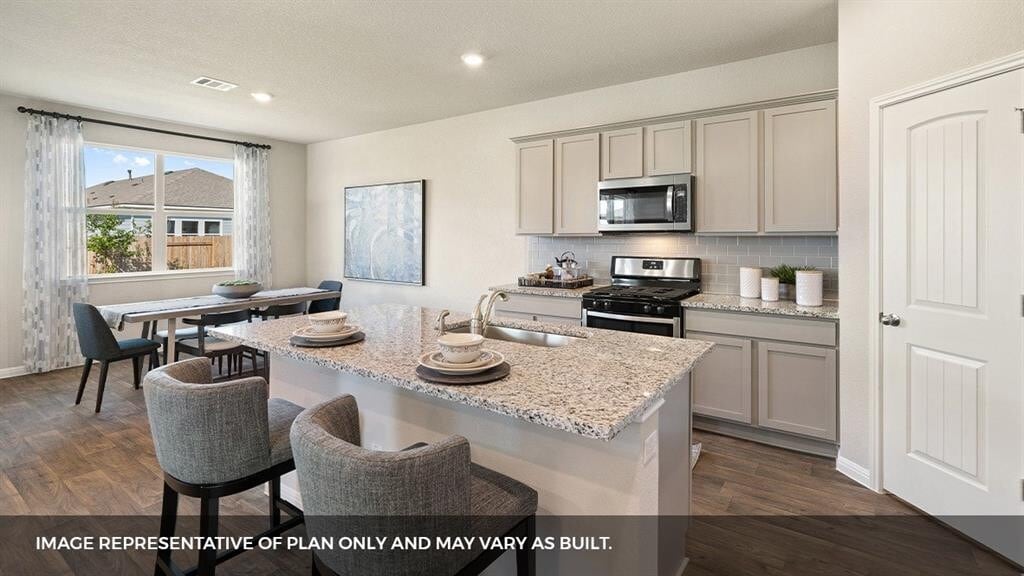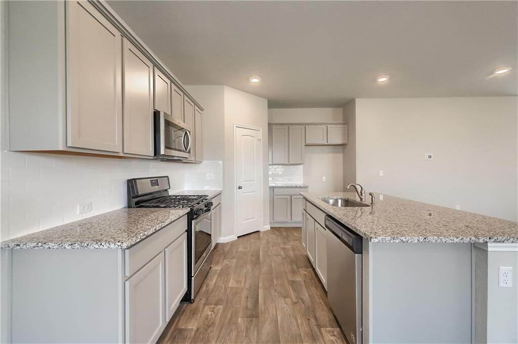 Gorgeous newer home with 4 bedrooms/3 full bathrooms conveniently located by the pool and play area! The foyer leads you into the large family room, spacious kitchen and dining area. The kitchen features granite countertops, subway tile backsplash, stainless steel appliances, recessed lighting and a kitchen island. Your guests have complete privacy as one bedroom, with a full bathroom next to it, are downstairs. Upstairs you will find 2 secondary bedrooms, full bathroom, laundry room, game room and the primary suite. This home has a spacious primary bedroom, massive walk-in closet, roomy primary bath and a large walk-in shower. All the bathrooms all have quartz counters. Backyard has a covered patio, full sod, irrigation and gutters on the front, sides and back of the house. This home includes the Home is Connected base package: Alexa Voice control, Front Door Bell, Front Door Deadbolt Lock, Home Hub, Light Switch, and Thermostat.