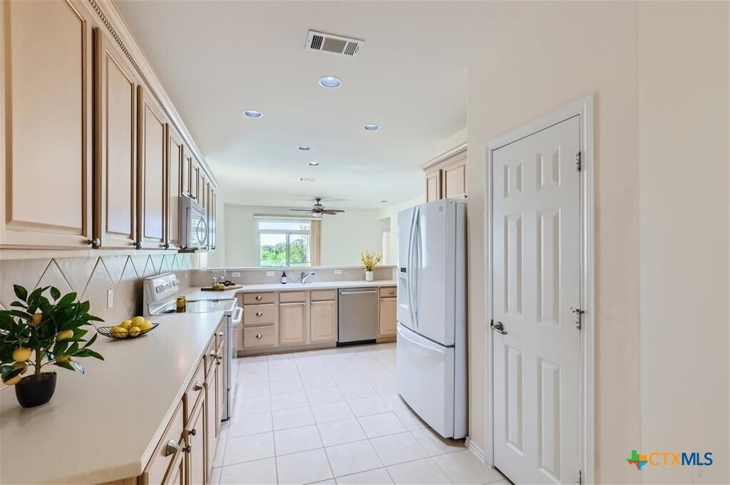 Discover this stunning Bayberry plan,perfectly positioned on a premium lot with breathtaking views of an untouched greenbelt. Enjoy the serene wildlife and unobstructed views right from your patio. This thoughtfully designed home features three spacious bedrooms,including a luxurious primary suite with a walk-in shower. The interior boasts tile flooring in the main living areas and warm wood floors in the bedrooms,creating a stylish and inviting atmosphere. The chef-inspired kitchen offers Corian countertops,pull out shelving,an electric range,and abundant cabinet space ideal for all your culinary needs. Located in Sun City,a vibrant 55+ Active Adult Community,you’ll enjoy an active and fulfilling lifestyle. Explore over 10 miles of walking trails,plus a wide variety of clubs and activities from ceramics and fine arts to fitness,theater,and cooking. With more than 50 chartered clubs and over $1 million invested in community amenities,there’s truly something for everyone. This home also participates in the Del Webb Lawn Maintenance Program,so the HOA takes care of your lawn giving you more time to relax and enjoy everything Sun City has to offer. Don’t miss your chance to own this exceptional home and experience the best of resort-style living! Welcome Home!