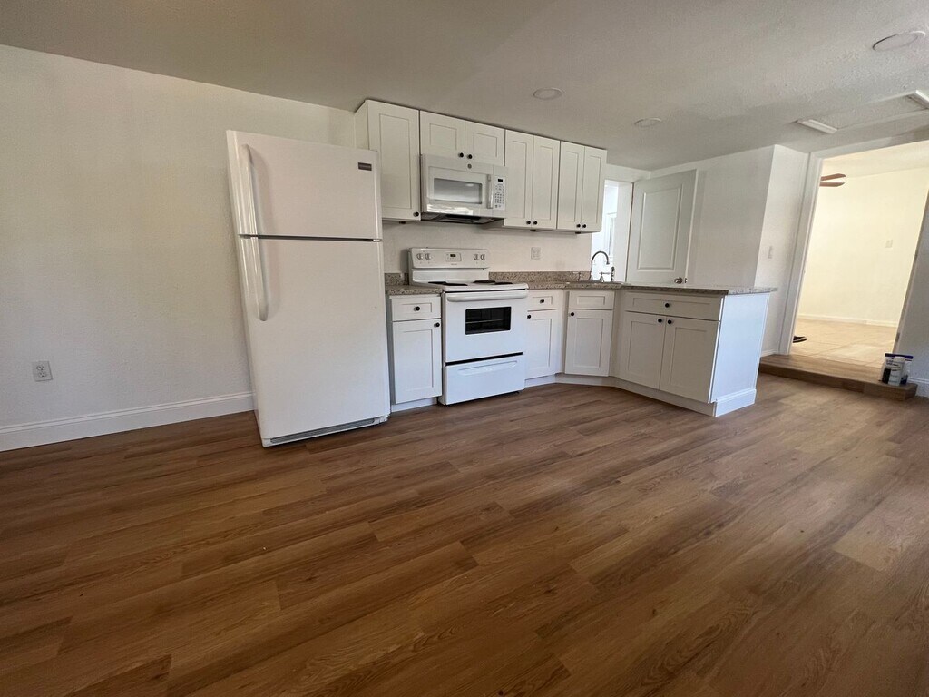This recently remodeled duplex, situated in the heart of downtown Saint Cloud, boasts an inviting open floor plan with a beautifully upgraded kitchen featuring modern cabinets and a convenient breakfast counter. The property offers two generously sized bedrooms and a sleek, contemporary bathroom. A separate laundry room, complete with brand new washer and dryer, adds practicality to daily living. Its central location ensures proximity to dining and shopping options, making daily errands a breeze, while the added advantage of being within walking distance to East Lake Tohopekaliga offers scenic views and access to restaurants, making it an attractive choice for those seeking a comfortable and conveniently located living space. Renter insurance is required. Tenants will also need to pay $300.00 additional rent to cover utilities including lawn care and pest control.