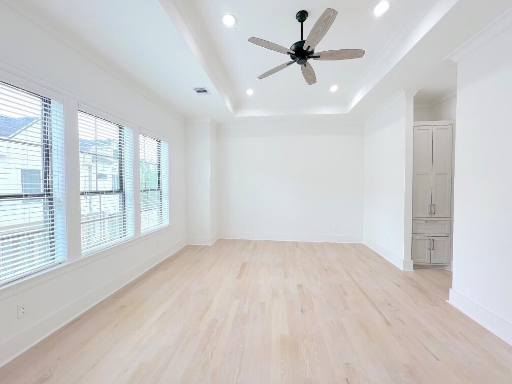 This stunning home for rent in Spring Branch offers luxury living in a gated community with a stucco and brick exterior and a spacious balcony. Inside,you’ll find 12-foot ceilings,hardwood floors,neutral tones,transom and trey ceilings,a gas fireplace with cast stone inlay,and upscale lighting throughout. The kitchen is equipped with stainless steel appliances,quartz countertops,custom cabinetry,a dry bar,wine cooler,refrigerator,and a bowed stainless steel sink. The primary suite features a spa-like bathroom with dual vanities,porcelain flooring,a soaking tub,separate shower,and a large walk-in closet with custom built-ins. A two-car garage provides access to the backyard,with yard maintenance included by the owner. MLS# 38227158