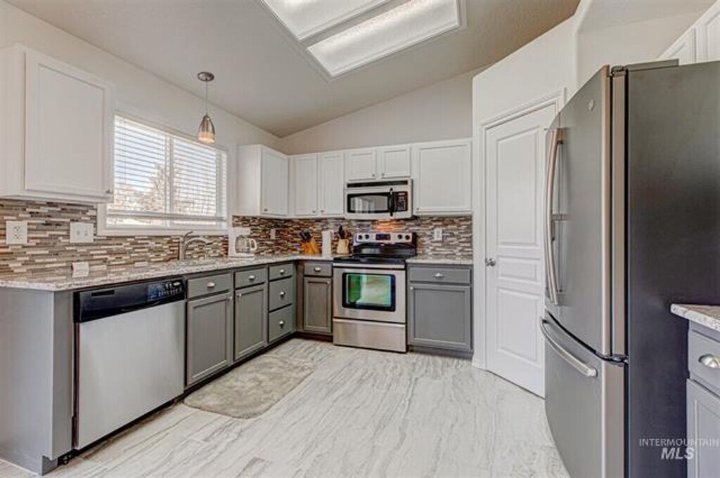 This home is newly updated in the kitchen, flooring & bathrooms! Inside you will find a split bedroom, 4 bed, 2 bath with vaulted ceilings! Utilize the 4th bedroom as a home office or entertainment room. Relax on the covered front patio or retreat to the backyard patio to imagine the possibilities for limitless gardening, entertainment & recreational opportunities. Extra-long driveway space, RV parking on side, and lovely planter to greet front door guests.