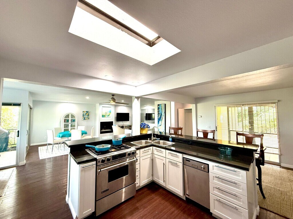1600 SQ feet condo with wonderful views of Palm Springs from this iconic mid-century condo close to the top level, at Rimcrest. Quiet pets welcome. 1600 square foot furnished condo with large front and back patio decks, newly updated kitchen with modern appliances, large living room, two bedrooms with full bathrooms, study or office off the kitchen area. Newer flooring in most of the condo. New paint in neutral tones. Lots of interior and exterior storage. Condo near the highest level of the complex, with parking by the waterfall. Besides the wonderful views of Palm Springs and the valley, enjoy the large pool with views and the various jacuzzies in the complex. One of the jacuzzies is just across the walkway from condo, and largest pool in the complex is down the walkway nearby. No smoking please! This complex has been featured in Palm Springs/Life magazine and is a quiet and peaceful place. Tenant to pay electric, gas, and cable/internet. Water, sewer and 1 garbage can per week included in rental cost. Dining table with seating for 4. Durable plates, eating utensils and cooking utensils. Glasses, coffee mugs, basic cooking pots and pans. Coffee maker. Three bar stools for kitchen eat-in counter, large TV and stand, area rugs, bedroom nightstands, closet organizers. Back deck lounger, front patio chairs and small table. Propane back deck BBQ. Condo is rented furnished, including fridge, stove, microwave, washer and dryer are provided in the unit. Master bedroom has a king size bed and second bedroom has queen size bed. There is also a queen size sleeper couch in the living room area. Only non-aggressive, quiet pets will be considered. Offered by Best Property Management Inc. Dave Wilsey - DRE 02135234