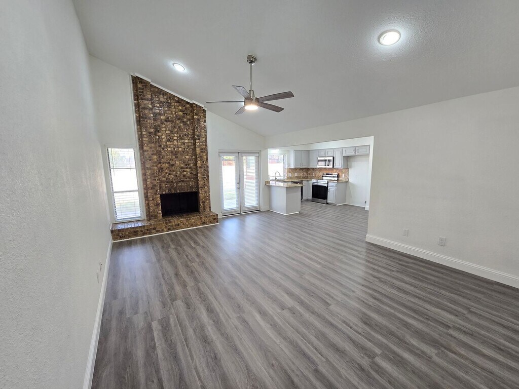 This is a recently renovated, freshly painted one story 4 bedroom 2 bath home in southeast Carrollton right next to Addison and just north of Farmers Branch. This home features new, high quality lvp flooring throughout, granite counters in the kitchen, and stainless steel appliances. The living room has a vaulted ceiling and includes a wood burning fireplace. This room opens up to a wonderful kitchen with a tiled backsplash that overlooks the backyard. The kitchen then opens up to the dining room with a pass through wetbar to create a nice open flow. Large backyard with plenty of space and a new fence. The property has also had some great energy efficient updates like added insulation and radiant barrier in the attic, solar fan, and led lights throughout to keep your electric bills low year round. It is centrally located with easy access to George Bush Highway, North Dallas Tollway, and I-35. The home is in Carrollton right next to Addison close to many dining, shopping, and entertainment options. There are also a couple of golf courses nearby.