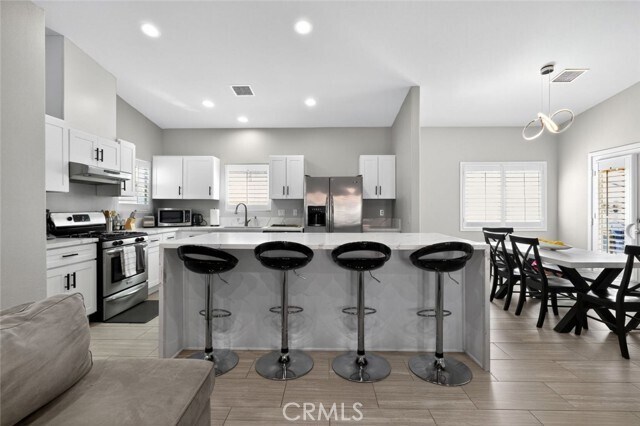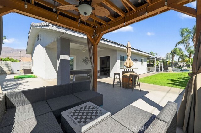 Welcome to your dream retreat in the heart of Palm Springs! This beautifully styled 4-bedroom, 2.5-bath estate blends resort-style luxury with everyday comfort and it is fully equipped for both relaxation and entertaining. Inside, enjoy an open, airy layout with high ceilings, recessed lighting, and abundant natural light. The chef's kitchen includes all essential appliances, a kitchen island with breakfast bar, and a formal dining room, perfect for casual meals or hosting dinner parties. The spacious living room features a cozy fireplace, adding warmth and ambiance. The primary suite is a true retreat with its own fireplace, while three additional bedrooms offer flexibility for guests, family, or a home office. You will also find a dedicated indoor laundry room, a generous garage, and ample driveway space with room to park a boat or RV. Enter into an entertainer's backyard that has it all: a built-in BBQ, covered seating areas, a covered outdoor pool table, and even your own golf course setup. Take a dip in the heated pool or soak in the infinity edge Jacuzzi, then unwind around the fire pit under the desert sky. Fully paid-off solar panels provide low energy costs and sustainable power, perfectly suited for desert living. Whether you are entertaining guests or enjoying peaceful evenings at home, this Palm Springs oasis has everything you need. Welcome home! MLS# GD25244149