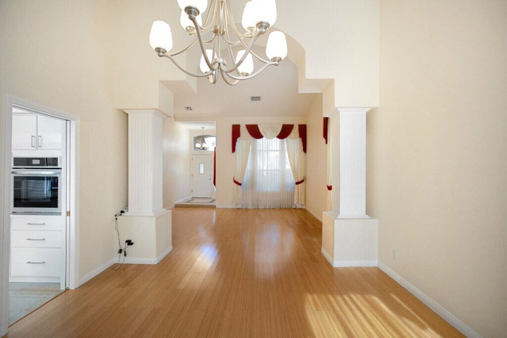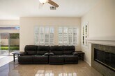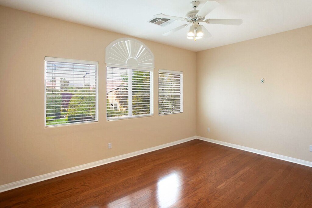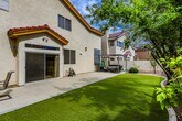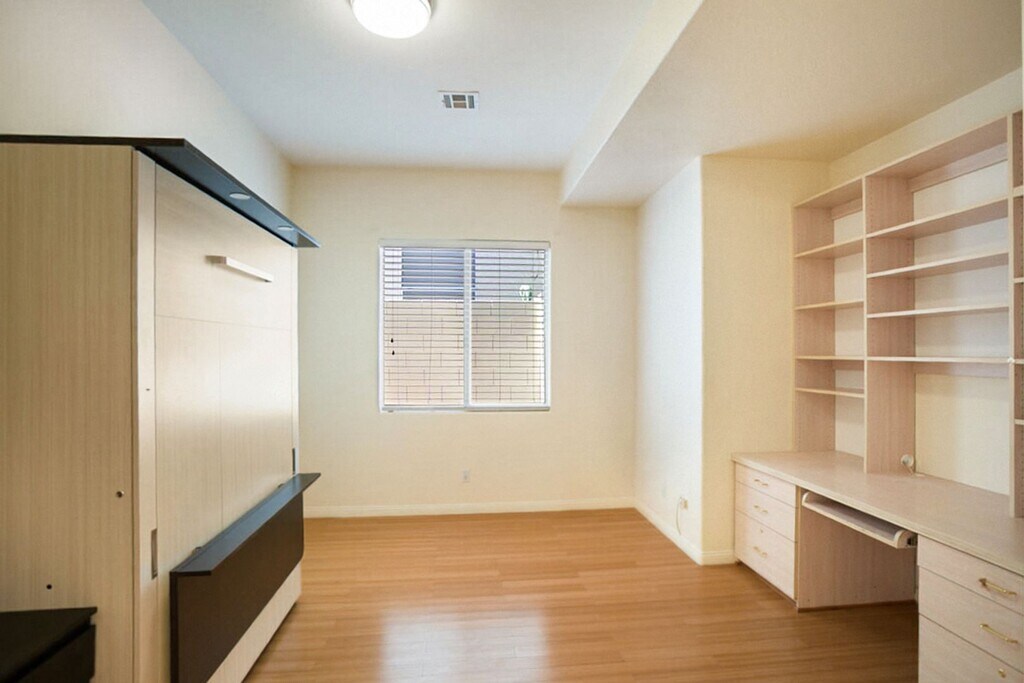Bright 5-bedroom Summerlin home with RARE 1ST FLOOR BEDROOM featuring built-in desk, shelving, Murphy bed & remodeled ¾ bath; Granite tile entry, luxury laminate & tile downstairs, hardwood upstairs; Formal living with cathedral ceilings, dining room & separate family room with gas fireplace. Island kitchen with granite countertops, upgraded cabinets, breakfast bar, double pantry, RO & stainless appliances; Spacious primary suite with double walk-ins, soaking tub & shower; Large patio, synthetic grass yard, 3-car garage with storage & whole house water filtration; Convenient to Meadows School; close to Adelson and Summerlin Pkwy, shopping & dining; Rent Includes Sewer, Trash and Resident Benefit Package!