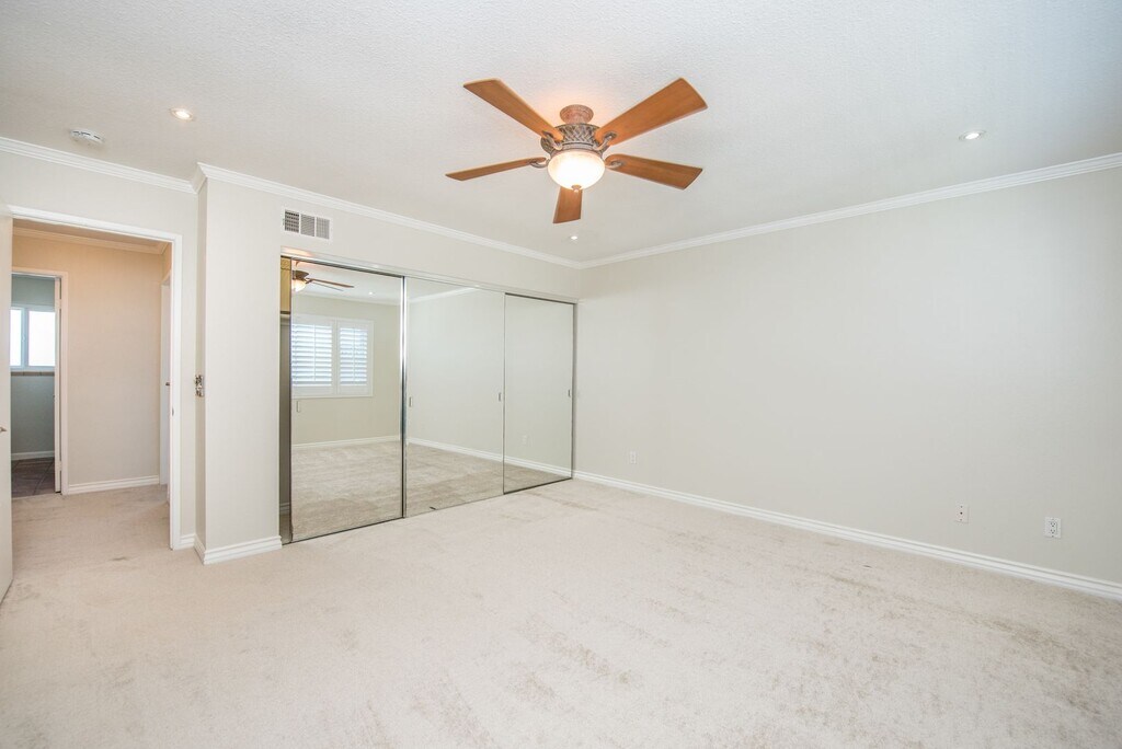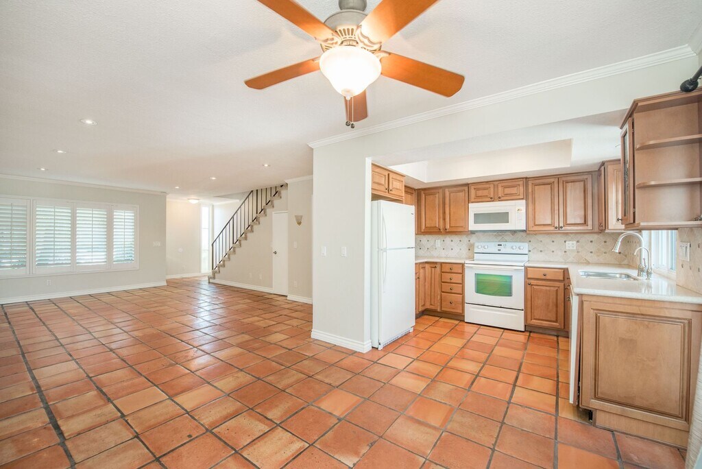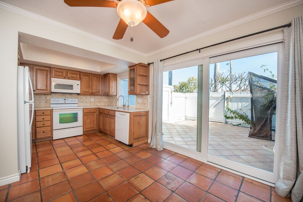 Nestled within the vibrant Mariner's Cove in Huntington Beach, this charming single-family detached home at 21204 Sailors Bay Ln offers an exceptional rental opportunity for those seeking the quintessential Southern California lifestyle. Ideally situated just a mile from the sandy shores, this residence is perfect for beach lovers and those who relish the charm of coastal living. Inside, tenants will enjoy a spacious 1,270 sq. ft. layout featuring two bedrooms and two bathrooms, offering a comfortable yet stylish living experience. As you enter, the oversized living room welcomes you with elegance and warmth, highlighted by Saltillo tile floors and a neutral paint palette. This bright and inviting space benefits from dual pane windows and stylish plantation shutters, perfect for relaxation and comfort. A convenient half bath features a custom tiled sink and countertop, adding a touch of luxury to everyday living. The open-plan design leads seamlessly into the dining room, overlooking the private patio. The kitchen is a chef’s delight, with quartz-topped counters and a stone backsplash. It is equipped with built-in appliances, recessed lighting, and soft-close drawers, combining functionality with style. Unique touches such as custom hardware and a picture window overlooking the patio enhance this culinary space. Upstairs, new carpet adds warmth to both bedrooms. The master bedroom is a sanctuary featuring a ceiling fan, mirrored closet doors, and an additional walk-in closet for ample storage. The secondary bedroom echoes the master’s comfort with built-ins and mirrored closet doors. The full upstairs bathroom, complete with a shower and tub, is spacious and beautifully appointed. Outside, the nice patio offers a tranquil escape with lush Bougainvillea and Plumeria plants, providing a secondary entrance and additional storage closet. This rental includes a detached garage with built-in storage, ensuring practicality and convenience. Residents of Mariner's Cove enjoy exclusive access to community amenities, including two pools, a spa, tennis courts, a clubhouse, sauna, and showers, with ample guest parking available. The home’s prime location offers easy access to Main Street and Pacific City HB, a hub for dining, shopping, and entertainment. Nearby, you'll find acclaimed restaurants and boutiques, enhancing the allure of this coastal community.