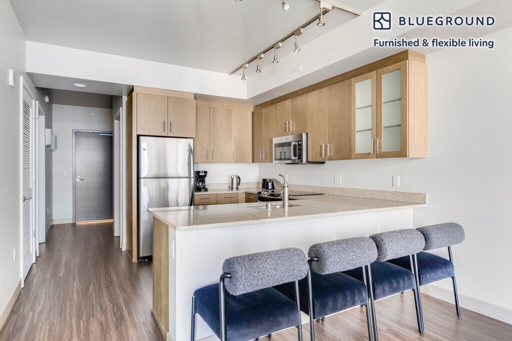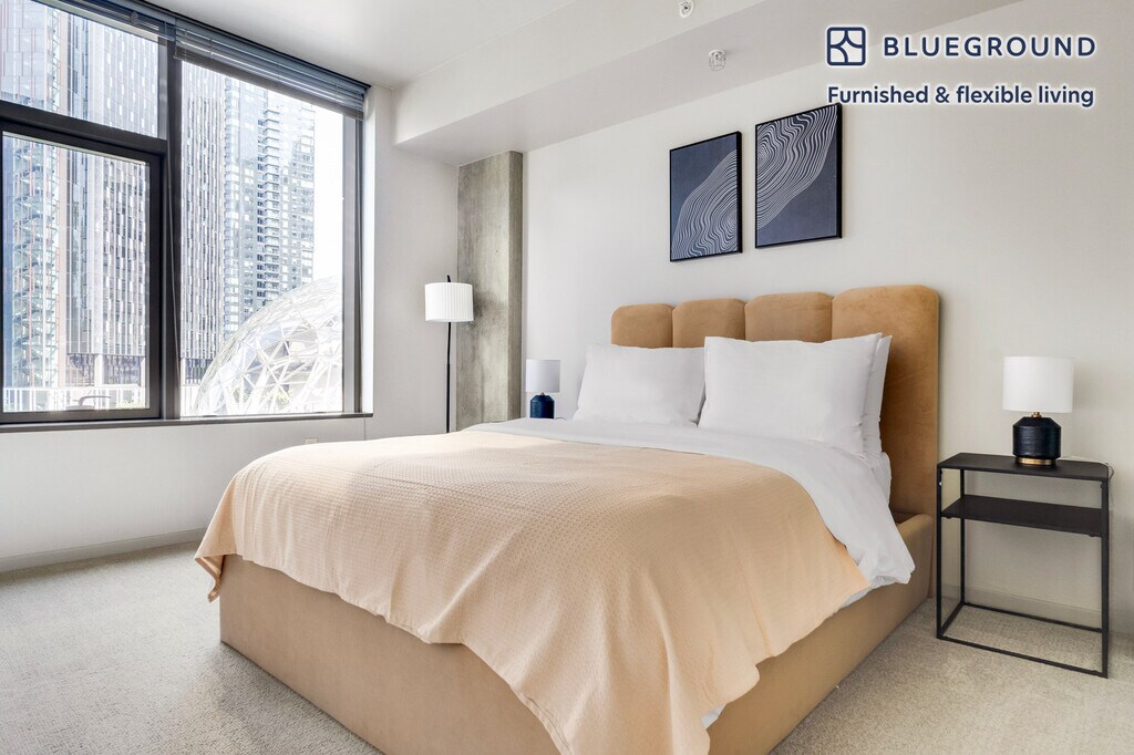Discover the best of Seattle, with this two bedroom apartment in Denny Triangle. It’ll be easy to simply show up and start living in this modernly furnished apartment with its fully equipped kitchen, charming living room, and our dedicated, on-the-ground support. (ID #SEA908) The advertised rate of $4,300/month is the lowest available price, based on a 12 month(s) stay with a move-in date of March 2, 2026. Rates vary depending on the duration of stay, season, and other parameters. For exact pricing and additional pricing components, please visit our website and enter your desired move-in and move-out dates. The rate is applicable when billed upfront; it can be higher if billed in multiple payments. Brokers are welcome to reach out. Were you looking for an unfurnished lease? Try Blueground instead and upgrade from unfurnished to furnished living: - Furnished at rates comparable to unfurnished - No setup or furniture costs - save thousands - Move-in ready - save time, just bring your suitcase Designed with you in mind Thoughtfully designed with bespoke finishes, modern furnishings, and a fully equipped kitchen, you’ll enjoy that “I’m home” feeling with this Blueground apartment. Whether you’re lounging in your sophisticated living room streaming the latest and greatest entertainment on the smart TV or premium wireless speaker, or getting some well-earned rest on the superior quality mattress with luxury linens, you’ll fall in love with everything this Denny Triangle apartment has to offer. This apartment also offers in-apartment laundry. Sleeping arrangements Queen Bed, 63in/160cm Queen Bed, 63in/160cm Amenities Building amenities unique to this two bedroom apartment include an on-site: - BBQ Area - Doorman - Dryer - Elevator - Game room - Washing machine - Lounge - Pets allowed - Rooftop BBQ Arrival and ongoing support The entire apartment is yours to enjoy! Throughout your stay, you’ll have access to our Client Experience team through the Blueground App. You can schedule additional cleanings, submit maintenance requests, and view our neighborhood recommendations with just a few taps. We’ll share all details upon confirmation of your stay. Ideally Located This furnished apartment is located in Denny Triangle, referring to the triangle-shaped area formed by Denny Way, Olive Way, and 5th Avenue. As the home of the Amazon Seattle headquarters, this area is a thoroughly developed business hub, full of high rise offices and condos. There’s no shortage of dining options here, offering practically every cuisine for lunch or dinner. This neighborhood is ideal for walking, and the central location makes it easy to go on foot to Downtown, South Lake Union or Capitol Hill. To get around, the King Country Metro Route 8 will be your guide. Other things to note Building amenities may have an extra cost. This Blueground apartment has flexible lease options, allowing you to book it for one month, a year, or more. Pets are welcome, though weight limits and breed restrictions apply and may incur fees. We take great pride in ensuring every photo displayed is shot in our own units with our actual furnishings. That said, we regularly refresh our decor and furniture arrangement, which may differ from what’s pictured. [SI]