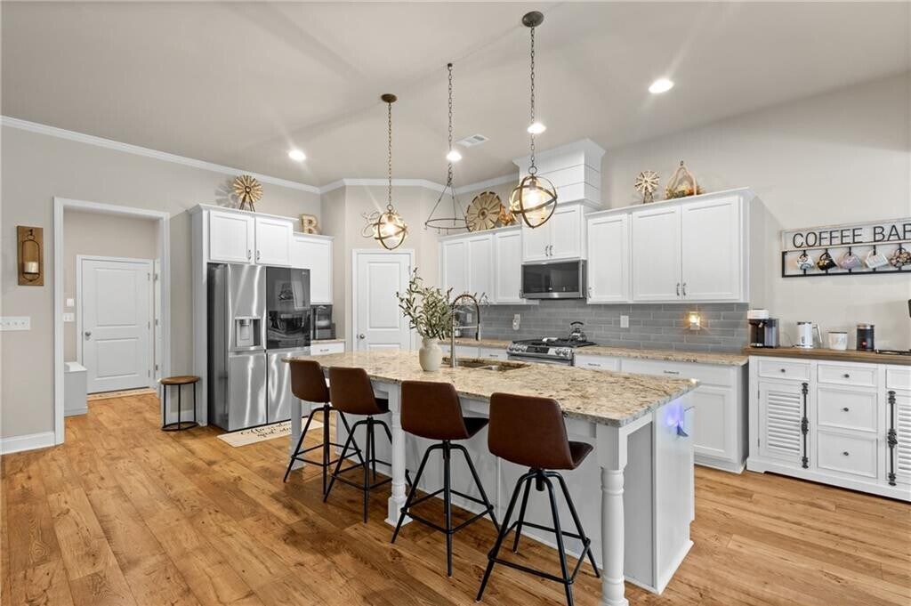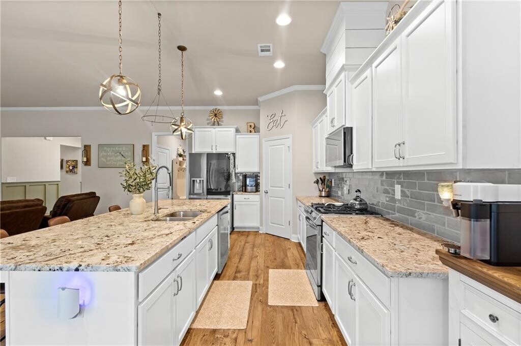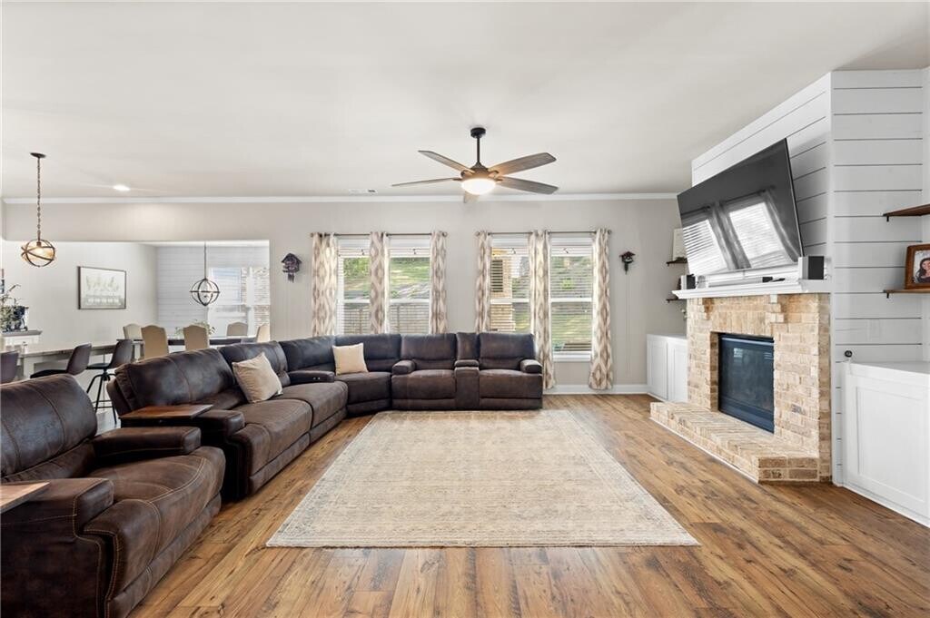 As soon as you turn onto the extra-long driveway and see this beautiful home nestled on its large acre lot,a sense of peace just washes over you. You'll be drawn in by the elegant yet welcoming facade,with a spacious three-car garage and perfectly landscaped yard,setting the stage for what's to come. It’s a home that feels like it’s miles away from everything,but is so conveniently located just 10 minutes from charming downtown Monroe with all its wonderful restaurants and shops. Along with easy access to both Highway 78 and Highway 316. Step inside this generous 2501 square foot home and discover the true heart of the house—the open-concept living room and kitchen. The space is filled with natural light and designed for gathering. The cozy living room centers around a stunning brick gas fireplace,beautifully flanked by shiplap,built-in cabinets,and custom shelving that are just begging to be filled with your favorite books and family photos. The kitchen is a true showstopper. With a large island and stunning stone countertops,it’s a space where you'll want to linger,whether you're preparing a meal or having a casual chat over coffee. This home is truly designed for modern living,with every detail thoughtfully planned. The primary bedroom on the main floor is a private oasis,offering plenty of room to unwind and recharge. And with two additional bedrooms and baths,there's space for everyone to feel right at home. But the real surprise is the upstairs bonus room with its own full bath. This flexible space is a blank canvas just waiting for your personal touch—imagine a home theater,a craft room,or a private guest suite! Outside,the living continues. The covered back patio,complete with a brick-surround gas fireplace,is the perfect spot for entertaining or simply enjoying the tranquil scenery. You’ll love the peaceful view of the fully fenced backyard,which is a gentle,grassy expanse perfect for play,gardening,or just enjoying the outdoors. This home offers the perfect blend of charm and modern convenience. It’s not just a house; it’s a lifestyle.