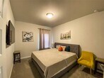 Welcome to this beautiful two-story home offering a functional layout with modern design. A private home office with French doors sits near the entry. The open dining area connects seamlessly to the kitchen and spacious family room with large windows bringing in natural light. The kitchen boasts a walk-in pantry,gas cooktop,electric oven,and a large island with seating. The first-floor primary suite features dual sinks,a soaking tub,separate glass-enclosed shower,and two walk-in closets. A secondary bedroom is also located on the main level. Upstairs includes a game room and two additional bedrooms. Enjoy the covered patio,fenced backyard,and mud room leading to the two-car garage. Washer,dryer,and refrigerator included. Zoned to George Ranch High School (A-rated),Reading Junior High School (A-rated),and Don Carter Elementary School (A-rated),all serving the Lamar Consolidated Independent School District. MLS# 36749574
