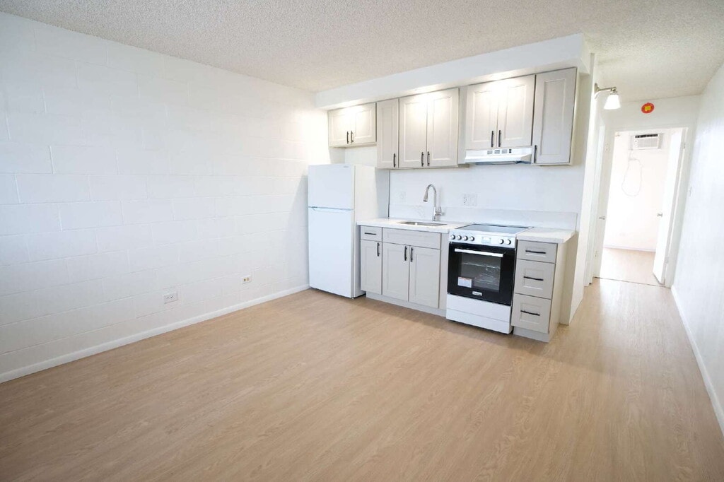 Beautifully renovated 1 bedroom, 1 bathroom condo located at 2122 Lime Street in the Hale Hoaloha building. This move in ready unit features new upgrades, including a renovated kitchen and bathroom with new cabinets, appliances, shower tile, and tub, along with new luxury vinyl plank flooring throughout. The bedroom includes a window air-conditioning unit, and the unit offers a spacious private lanai. The secured building features an elevator, trash chute, and coin-operated laundry on site. One assigned parking stall included. One-year lease required, no pets. Water, sewer, and trash are included in the monthly rent. To schedule a showing please call . Renters insurance required. 1 year lease Property Insights Inc. (RB-23988)