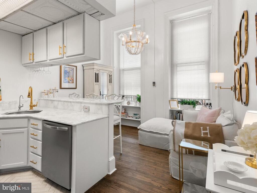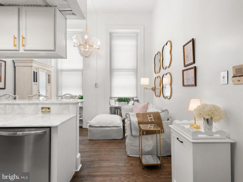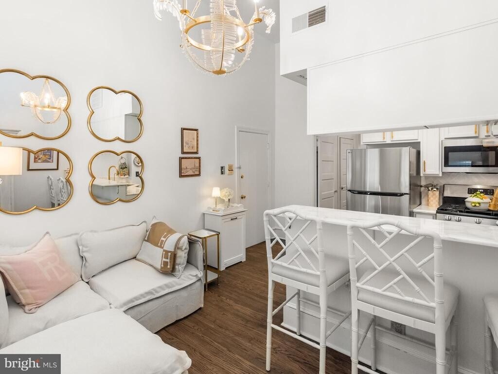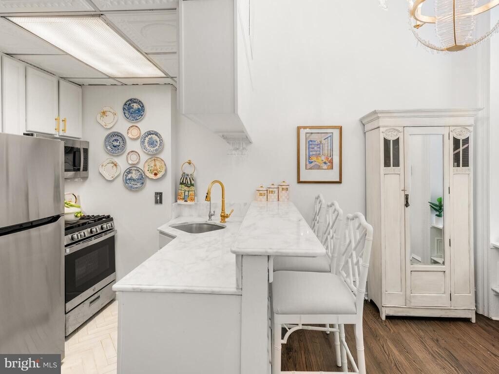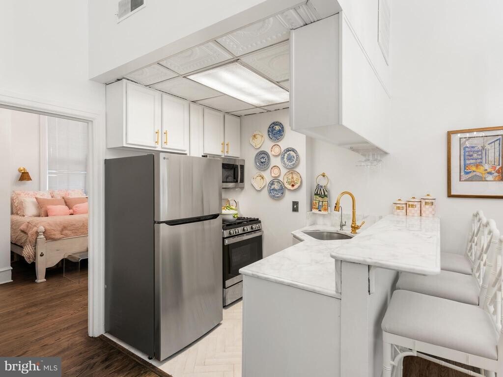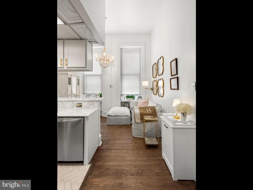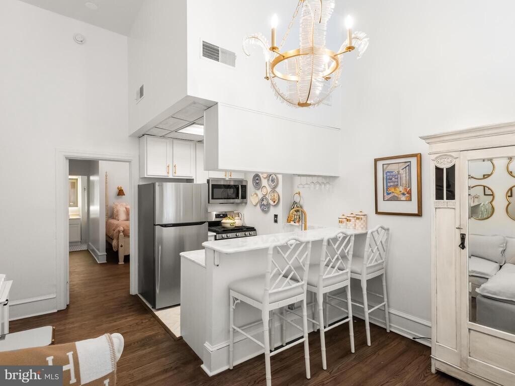Welcome to 2122 Spruce Street—this bright and cozy 1 bedroom, 1 bathroom first-floor apartment is available for rent in a charming brownstone on one of Rittenhouse Square’s most picturesque, cobblestone streets. Fully renovated in 2025, this apartment offers a clean, modern feel with all new appliances, refinished hardwood floors, marble countertops, custom lighting throughout, a newly tiled bathroom floor, a new bathroom window, and fresh paint—making it completely move-in ready. As you enter, you’re greeted by abundant natural light from the large front windows. The kitchen features stainless steel appliances—including a refrigerator, gas range, microwave, and dishwasher, new marble counters and tile flooring—and a convenient breakfast bar that opens to the living area, creating a functional and comfortable layout. The bedroom is located in the rear of the unit and offers tall ceilings, a large window, and closet space. Just beyond is an in-unit combo washer/dryer for added convenience. The full bathroom, also recently updated, includes a tiled shower/tub and vanity. Additional features include basement storage and easy access to everything Rittenhouse Square has to offer. Enjoy being just steps from top restaurants, shopping, the Schuylkill River Trail, and a nearby dog park. Blocks away from Rittenhouse Square and historic Art Museum area - live in one of the most exciting Philadelphia neighborhoods. Nearby Trader Joes and several neighborhood grocery stores. All of this adds to your amazing Center City Philadelphia living experience. Easy accessibility to Major Highways, Museums, Restaurants and Night-life. UPenn is easily accessible via the Walnut Street Bridge. Street parking is available, with nearby parking lot options as well.