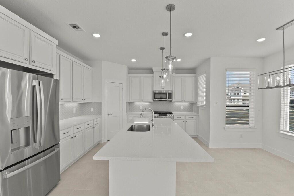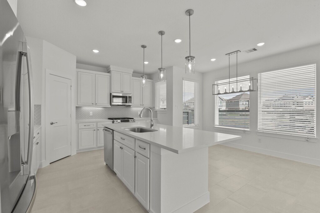 Brand new and never lived in! Located in Bridgeland’s Prairieland Village,just steps from Longwing Landing Aquatic Center,this Courtyard Capeside Cottage offers 3 bedrooms,2.5 baths,a versatile flex space,and a 2-car garage. Outdoor living includes a covered front porch,rear patio,and upper balcony. The first floor features an open family room with modern fireplace,quartz island kitchen with GE stainless steel appliances,casual dining,and abundant natural light. Upstairs,the owner’s suite boasts a luxury bath with large shower,dual sinks,and walk-in closet,plus two secondary bedrooms,a utility with folding table,and a central flex space. Refrigerator,washer,and dryer are included,along with blinds,security system,sprinkler system,gutters,sodded yard,and landscaping—making this home fully move-in ready. Enjoy world-class Bridgeland amenities right outside your door. MLS# 25268647