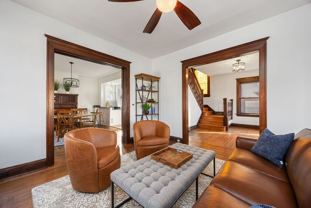 Introducing a charming 4-bedroom, 3-bathroom home located in the desirable Norwood, OH neighborhood. With its spacious layout, original hardwood floors, stainless steel appliances, and modern amenities, this newly painted and fully furnished home is move in ready for professionals and their families. Situated conveniently close to University of Cincinnati Hospital, Good Samaritan Hospital, and Cincinnati Children's Hospital, this home offers easy access to the city's top medical facilities. The home is close to local universities as well. Xavier University is an easy 12-minute walk, and a 7-minute drive to the University of Cincinnati campus too. This property boasts a separate 3 car garage, its own private driveway and fenced in yard for privacy. The home also has an enclosed front porch which provides residents another area to enjoy all seasons throughout the year in comfort. Home has Central Air