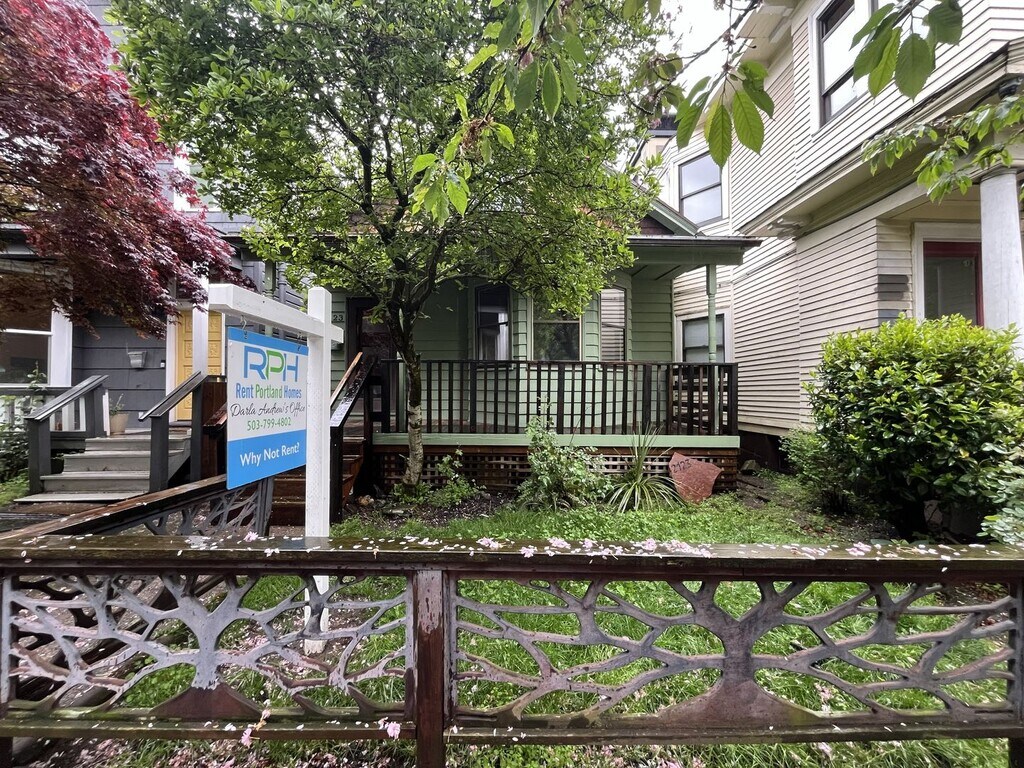 Welcome to this spacious 5-bedroom, 2-bathroom home offering 2,572 square feet of versatile living space in Northwest Portland, just moments from downtown, trending shops, restaurants, Providence Park, and more. The property features a partially fenced front yard with flourishing trees, along with a covered outdoor deck that creates a welcoming and private entry. A fenced backyard and multiple outdoor spaces provide additional room to relax and enjoy the outdoors. Inside, the home showcases beautiful wood flooring that adds warmth and character throughout the main living areas. The living room is filled with charm, featuring exposed wood-beamed ceilings, bright bay windows overlooking the patio, and a central wood-burning brick fireplace—perfect for cozy evenings. This inviting space flows seamlessly into the dining area, complete with a hanging light fixture and ample room for gatherings. Adjacent to the dining room, the modern kitchen includes a stainless steel refrigerator, electric stovetop and oven, microwave, dishwasher, and a deep ceramic sink. Dark wood cabinetry surrounds the space for abundant storage, while bright lighting enhances functionality. Down the hall, a comfortable family room at the back of the home features carpeted flooring, bright windows, and a mini-split A/C unit for year-round comfort. This level also includes a full bathroom with a long single vanity, tub/shower combination, and built-in linen shelving. A dedicated laundry room with full-size washer and dryer is located nearby, and additional washer/dryer hookups add flexibility. Upstairs, three bedrooms offer unique architectural character with sloped ceilings, bright windows, built-in shelving, and a skylight that fills one room with natural light. These spaces provide flexibility for bedrooms, home offices, or hobby areas. The finished basement adds exceptional versatility with two additional bedrooms, a full kitchenette, and a large open living area. The kitchenette features granite countertops, white cabinetry, glass stovetop, mounted microwave, dishwasher, sink, and tiled backsplash. The adjacent living space includes a mini-split A/C and offers plenty of room for a second living room, entertainment area, or dining setup. Both bedrooms on this level include closets, built-in shelving, and bright windows, making the lower level ideal for multi-functional living. Outdoor living is equally inviting with a raised deck perfect for morning coffee, a patio area for entertaining, and a fenced backyard that creates a private outdoor retreat. Mature landscaping and open green space enhance the peaceful setting. With five bedrooms, two kitchen areas, multiple living spaces, A/C, washer/dryer hookups, a finished basement, and a prime Portland location near downtown amenities, this home offers a unique blend of comfort, flexibility, and convenience. Open Application Period Begins: 03/06/2026 Call or Text Our Leasing Agent to schedule a showing! English Speaking Spanish Speaking Visit our website to apply and view other homes we have available! Do you need property management services? Maximize your income and cut your costs!