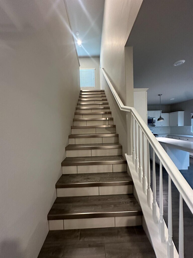 Lennar home right off of Shaw and Leonard in Clovis! This 4 bed, 2.5 bath home features wood plank tile flooring (throughout the entire home besides bedrooms), low maintenance landscape, a tankless water heater, and a solar system! The kitchen features beautiful white quartz countertops, tile backsplash, white cabinets, and stainless steel appliances. All the bedrooms and the laundry room are upstairs. The backyard features synthetic grass and a large concrete area, as well as landscaping. This home is within the highly regarded Clovis school district. No pets, please. Renter's insurance is required. Property will be available in the beginning of March, do not disturb current occupants.