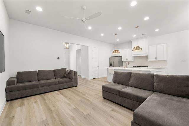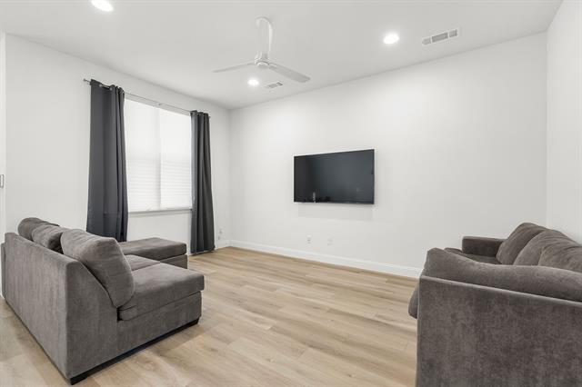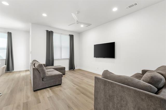 Modern architecture and a charming gated front courtyard welcome you to this beautifully designed townhome in Walsh. The open-concept main level is filled with natural light and features a spacious island kitchen with custom backsplash, upgraded hardware, and designer lighting—perfect for everyday living and entertaining. A main-floor suite offers flexibility for guests or a home office. Upstairs, the private primary bedroom is thoughtfully separated from two secondary bedrooms and a versatile loft ideal for a playroom or gym. Enjoy a private backyard and low-maintenance, lock-and-leave living just steps from premier community amenities, all in highly sought-after Aledo ISD. Contact agent 2 with questions