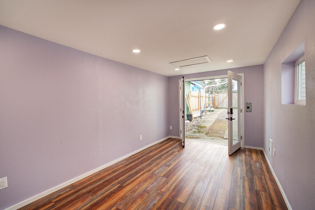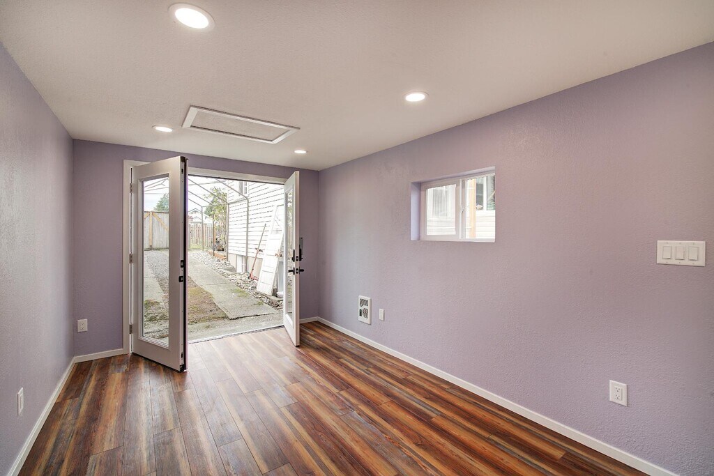 **2 Bedroom and 1 bath duplex home in the heart of North Everett.** The 2nd bedroom is a detached office space, very ideal for a "work-live" set up.**Open shelving kitchen** A double headed shower - Very Unique for residential units **New kitchen appliances**Hardwood floor**Spacious and fenced yard**On-site parking**Electric Heat**Safe and quiet neighborhood**Nearby schools, grocery stores, market, coffee shops and many others**Pets allowed**Estimated utilities (water, sewer, garbage and electricity) is 150/month and will be reconciled every 6 months or at the end of the lease There are 3 units on this property. The bottom unit, upper unit and office space
