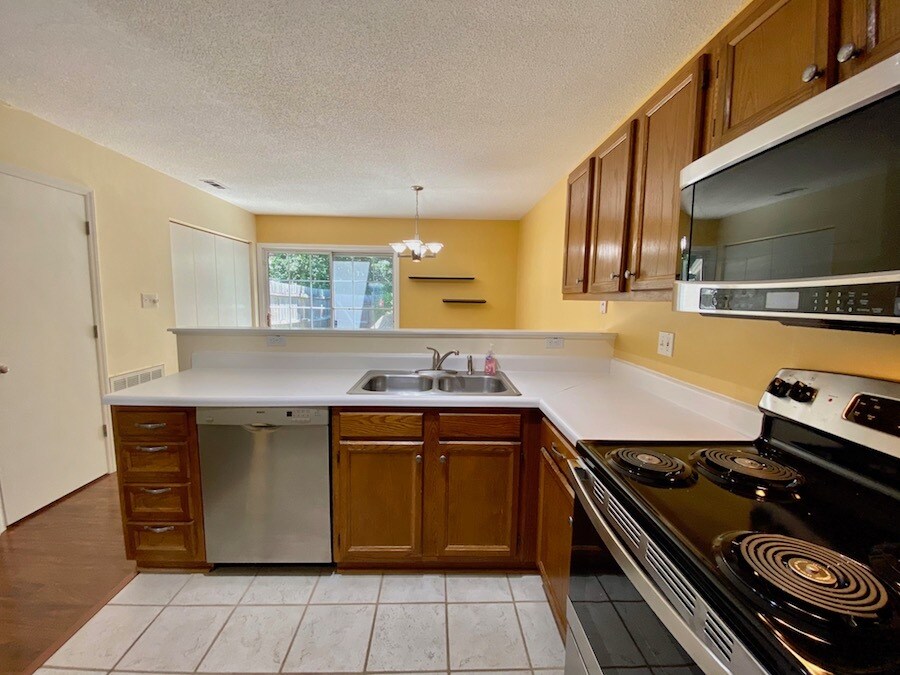 AVAILABLE JULY 1, 2026! Adorable townhome in Breckenridge-super convenient to downtown, RTP, and Chapel Hill. Open floor plan downstairs with large living room, kitchen open to dining room, half bath and laundry. Fenced back yard has a cute patio, gas grill, and locked storage closet. Upstairs features 2 spacious bedrooms and a shared bathroom. Carpet upstairs, wood laminate and tile downstairs. All kitchen appliances provided including washer/dryer. No smoking or vaping on the premises. Small, quiet pet negotiable with additional security deposit. Unfurnished. All appliances provided, including in-unit washer and dryer. Tenant pays all utilities. Owner/HOA pays lawn care. Breckenridge is a small community of 2-story townhomes near the Hope Valley Rd/ MLK Pkwy intersection.