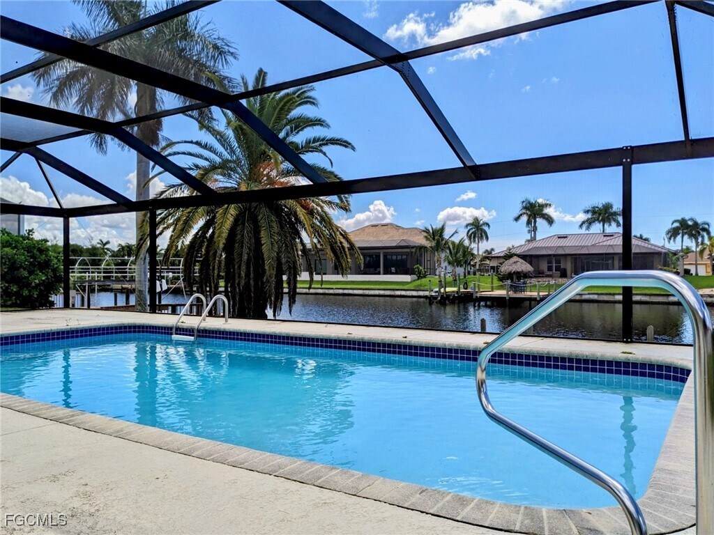 GULF ACCESS,WATERFRONT,POOL HOME IN DESIRABLE Sands/Enclave neighborhood! Best priced rental home in neighborhood. LOCATION IS EVERYTHING! High,vaulted ceilings,luxury,vinyl,plank flooring in bedrooms & tile in kitchen. Enjoy riding your bikes to Cape Harbour or dancing under the stars in the circle at Fathoms restaurant. The SOUTHERN,REAR-FACING LANAI is perfect for coffee in the morning or drinks while you watch the incredible sunsets. Turtles & Dolphins have been known to swing by your canal to frolic. Quick access to open waters & beaches. Great fishing from your back yard on a concrete dock that's ready for a fire pit or a table & umbrella. Close to shopping,restaurants,marinas,schools & beaches. Come start your perpetual vacation & make happy,heartfelt memories. Live where you vacation!