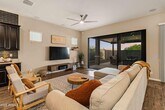 One of the most beautiful homes in Sienna Hills is available as your vacation paradise. Featuring a large living room with 12 foot sliding door that opens to a backyard with large extended patio cover and artificial turf,your morning coffee or afternoon wine can be enjoyed overlooking the mountain. The primary suite is separate from the three secondary rooms,one of which can be used as a home office. The primary suite has a large walk in closet with access to the laundry room. The community pool is directly across the street from the home,as well as hiking right out your front door. Located on a corner lot of the cul-de-sac,this home offers the ultimate in privacy and serenity.