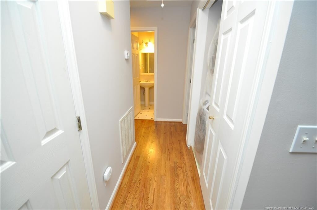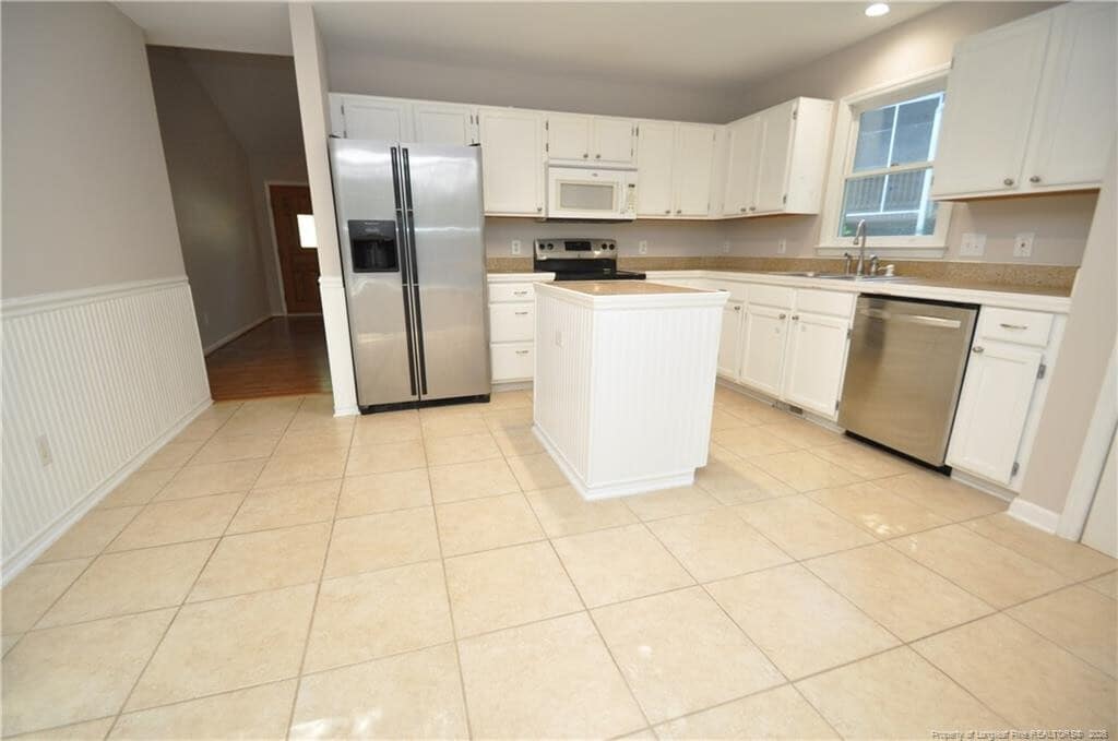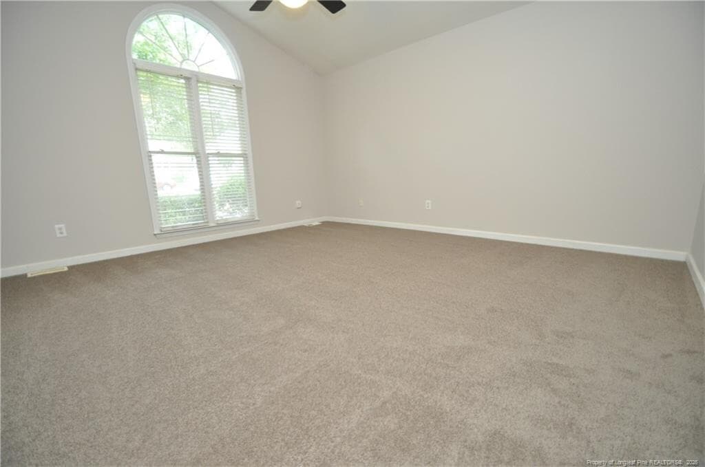 Opportunity awaits at this charming ranch style home nestled in a quiet neighborhood convenient to Raleigh, Cary, I-40, local parks, universities and much more! An extra-long driveway welcomes you home and provides loads of off-street parking space. A covered front porch leads into an interior that's been treated to neutral paint, hardwood floors and carpeting. A sprawling, 15x17 family room boasts a vaulted ceiling, a cozy fireplace and double windows overlooking a lush front yard. Around the corner, you'll enter an updated kitchen featuring bright white cabinetry, a granite-topped island, recessed LED perimeter accent lighting, a stainless steel double-bowl sink, sleek appliances and an adjacent dining area with a bay window. Before finishing up in the kitchen area, be sure to visit the uber-private rear deck with a storage closet as well as a storage shed! Back inside a hallway will lead you to all three bedrooms as well as a laundry center, with a front-loading washing machine and dryer included for resident's use. This home was built with a split bedroom" design that provides the maximum amount of privacy and noise isolation between the primary and secondary bedrooms. Bedrooms #2 and #3 are both generously proportioned with ample closet space and easy access to a full hall bathroom. The primary bedroom is a sight to behold, and at a whopping 14x15, it offers all the space you could need! A vaulted ceiling and double windows topped with a transom window serve to add to the spacious feeling this room exudes. You'll also find a walk-in closet with a window as well as an en-suite bathroom with dual sinks on an elongated vanity and a separate shower/water closet space."