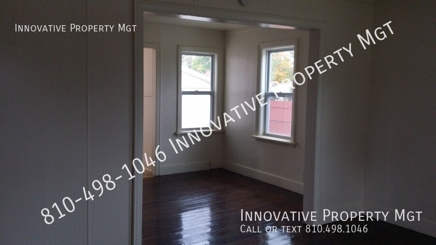 Recently refurbished 2 bedroom, 1 bath in Flint Township. Living room and dining room have neutral paint and refinished hardwood floors. Completely renovated kitchen has new flooring, countertops, refrigerator and stove. Both bedrooms have nice hardwood flooring and nicely sized closets. This home also has first floor laundry, a large pole barn in the backyard!