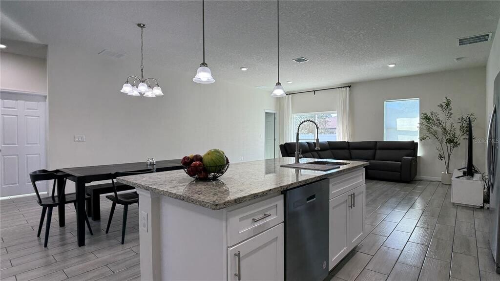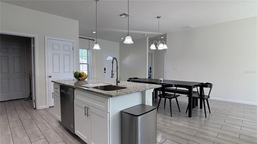 Newer Build (2023)! Beautiful 4-Bedroom,2-Bath Corner Lot Home with Fully Fenced Yard – Basic Cable and Internet Included! Welcome to this impressive corner-lot home offering the perfect blend of space,comfort,and style. The fully fenced yard provides privacy and plenty of room for outdoor activities. Step inside to discover a bright,open floor plan designed for modern living—ideal for both entertaining and everyday comfort. The chef-inspired kitchen features stainless steel appliances,white shaker cabinets,granite countertops,a large island with seating,recessed lighting,and a pantry for extra storage. The primary suite includes two walk-in closets and a luxurious ensuite bathroom complete with a soaking tub and stand-alone faucet,dual-sink vanity,separate walk-in shower,and private water closet. The additional bedrooms are generously sized,offering comfort and flexibility for family or guests. Additional highlights include ceramic tile flooring throughout,a laundry room with washer and dryer (provided as a convenience item),and an expansive yard perfect for gatherings,play,or quiet relaxation. Centrally located near Lake Marion,Lake Hatchineha,and Lake Pierce,this home offers easy access to outdoor recreation and scenic lake views. Don’t miss the opportunity to make this beautiful home yours—schedule your showing today! MLS# O6352525