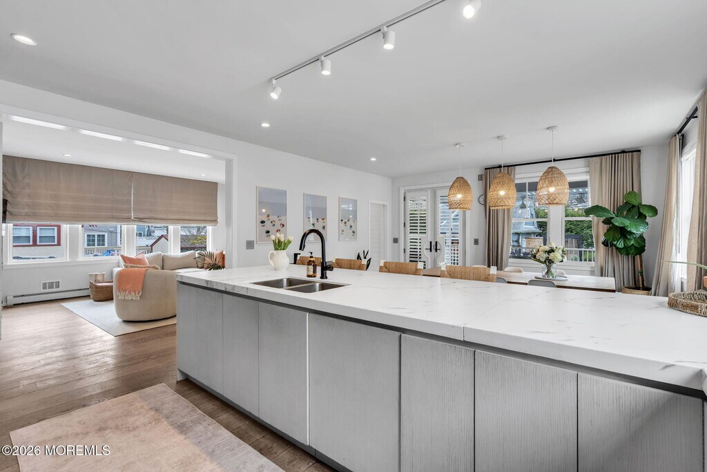 Summer 2026 memories await in this gorgeous 5 bedroom,4 bath colonial home in North Belmar,available for the full month of July for $32,000 (early August avail inquire for details). Just two blocks from the beach,this beautifully decorated home is just moments from Belmar's restaurants,shops,and boardwalk.The main level features an open-concept kitchen,dining,and living area,along with a bonus room perfect for a playroom or home office.The second floor includes a beautiful primary suite and two guest rooms. The third level offers two additional spacious bedrooms,a full bathroom,a coffee bar/kitchenette,and balcony with ocean views.The finished basement is designed for both relaxation and recreation,featuring a full gym,infrared sauna,and a private theater room for movie night Step outside to your own backyard oasis,complete with an in-ground pool,hot tub,sauna,outdoor fireplace,and al fresco dining area,perfect for unwinding after a day at the beach or on warm summer evenings!
