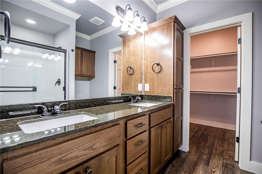Spacious 3 bed 2 bath home in central Pea Ridge just minutes from Bentonville and Rogers. This open floor plan features hardwood tile throughout the common areas and in the kitchen enjoy granite counters and stainless steel appliances including the fridge. This home also features large carpeted bedrooms and in the master bathroom you will find plenty of storage and counter top space with dual sinks and a large walk in shower. Also included with this home is a Washer and Dryer! Outback lounge or BBQ on the spacious covered patio that opens up to a level spacious yard. Lawn care and landscaping is included. Yards are not fenced other than a divider fence between units. Pets are allowed with an additional $250 per pet refundable deposit. An additional monthly pet rent applies. MLS# 1328492