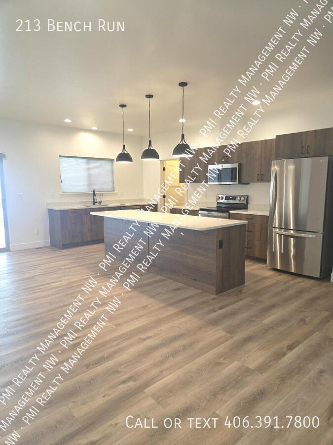 Brand New home, featuring three spacious bedrooms and two and a half baths, provides ample space for relaxation and rejuvenation. Natural light floods the living areas, enhancing the inviting atmosphere and highlighting the home's elegant features. Outside, the property is enveloped by the breathtaking beauty of Montana's natural landscape, offering endless opportunities for adventure and exploration. Laundry area featuring washer and dryer. Attached 3-car garage NO Smoking! NO Pets! Contact our office to schedule a viewing .Vinyl Plank Water Softener