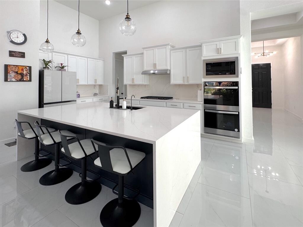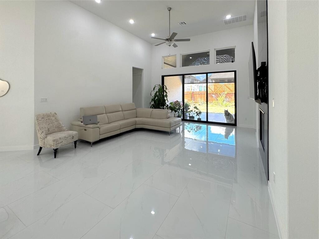 This exceptional one-story home combines style, comfort, and functionality. Featuring 4 spacious bedrooms and 4 bathrooms, this home is perfect for families or those who enjoy entertaining. The open-concept layout creates a welcoming atmosphere, with a spacious living area with sliding doors to backyard that seamlessly connects to the gourmet kitchen with double oven and spacious dining space. Each bedroom offers plenty of privacy, with the master suite providing a luxurious retreat complete with a spa-inspired bathroom and walk-in closet. In addition to the generous living space, this house includes a three-car garage, providing ample room for parking, storage. This house has lot of upgrades like tiles in entire house, Backyard Patio Tiles, Shades for windows solar operated with remote, Beautiful quartz countertops. Recess lights in all the rooms with remote fans. All new appliances including refrigerator , washer and dryer. Friendly neighborhood and convenient to grocery stores , restaurants and more. Community amenities include swimming pool, club house and playground. Highly rated Leander ISD schools.