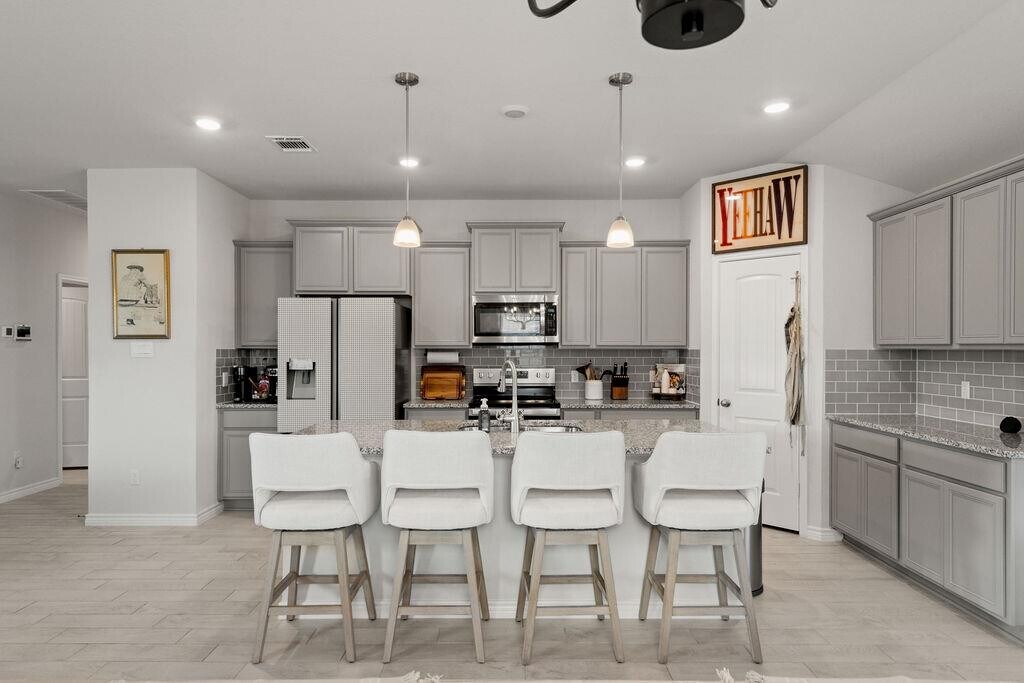 Rare large-lot new build—move-in ready and loaded with upgrades! This stunning Elmwood single-story home, built in 2024, offers 2,024 sq ft of thoughtfully designed living space on a rare 0.39-acre lot. Featuring three bedrooms, two bathrooms, and a versatile den/study with upgraded glass doors, it provides plenty of room for both everyday living and working from home. The open-concept layout seamlessly connects the living room to the well-appointed kitchen, complete with flat-panel maple cabinetry, granite countertops, stainless-steel appliances, and a large island perfect for entertaining. Two-inch faux wood blinds are installed throughout, adding style and privacy. Smart-home integration includes a QoLsys smart panel, allowing you to control and secure the home from your phone or by voice. The private primary suite features a double vanity, luxurious soaking tub, walk-in shower, and generous walk-in closet. Energy-conscious finishes, recessed lighting, tile and carpet flooring, and a welcoming foyer enhance the home’s comfort and appeal. Step outside to a full covered patio spanning the entire width of the home overlooking the spacious backyard—ideal for gatherings, gardening, or simply enjoying the peaceful setting. A three-car garage offers ample parking and storage, and with no HOA restrictions, you have the freedom to truly make this home your own. No more large lots are being built by this builder, making this an increasingly rare opportunity to own a move-in-ready home with space to spread out in a desirable location. Mortgage is FULLY ASSUMABLE at 3.99% with not much difference between asking price and mortgage balance.