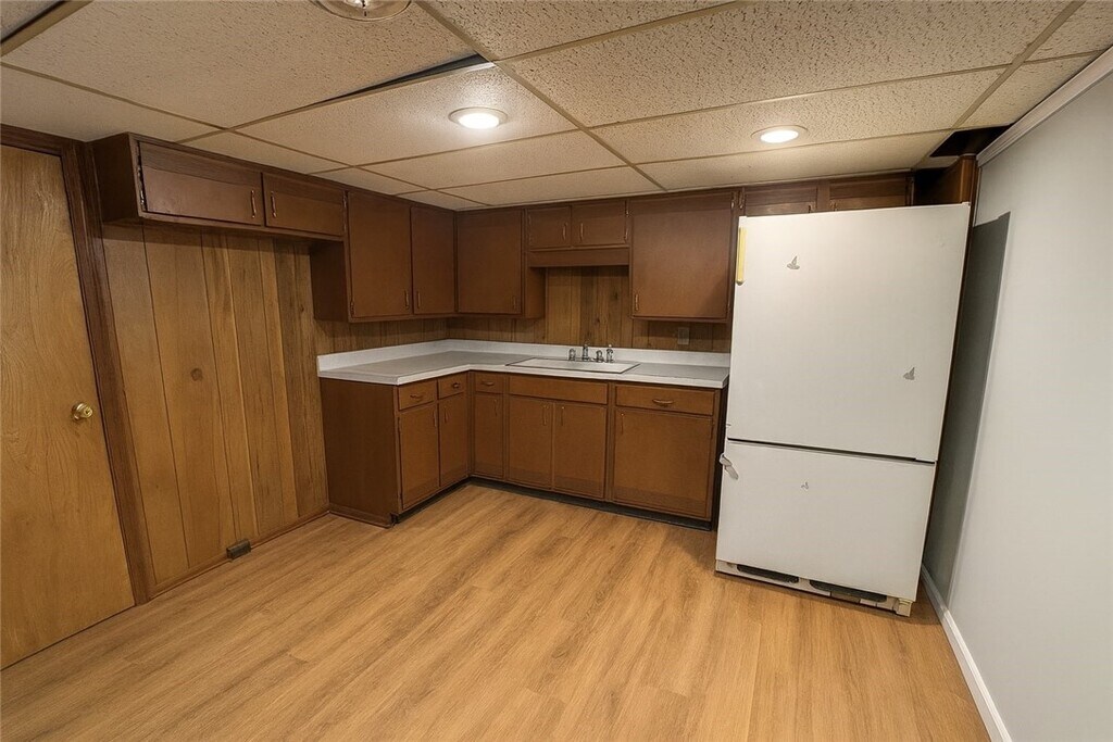 Beautifully updated ranch home featuring fresh interior paint throughout,new light fixtures,refinished hardwood floors,and new flooring in the basement. The main floor includes three bedrooms,one full bath,one half bath,and convenient main-floor laundry. This home offers forced air heat,central air,and is wheelchair accessible for added convenience. The finished basement is perfect for an in-law setup,offering a full bath,a second kitchen,a separate bedroom with egress,two bonus rooms,and a spacious living/rec room. Rent includes water,garbage removal,and professional lawn care. Small dogs under 40 pounds are allowed (Breed Restrictions). All adult applicants must meet screening criteria,including a minimum 675 credit score. Applications must be submitted through RentSpree or Zillow prior to scheduling any showings.