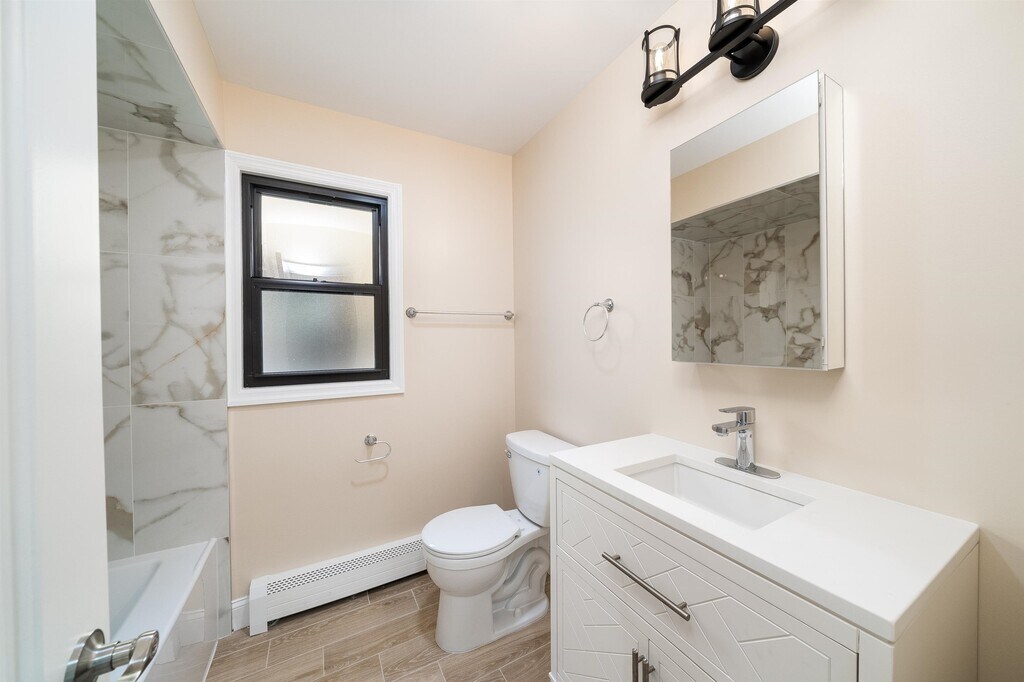 Welcome to this stunning, newly renovated 3-bed 2-bath apartment with tandem 2-car parking included, nestled next to the charming Leonard Gordon Park in Jersey City Heights. The apartment is filled with natural light, enhancing its airy and open feel. Recessed lighting adds a touch of sophistication to each room. The apartment is equipped with the convenience of an in-unit washer/dryer. The kitchen is a culinary enthusiast's dream, featuring stainless steel appliances, Kohler sink and sleek quartz countertops that are as stylish as they are functional. Both bathrooms have been thoughtfully designed with a contemporary aesthetic, featuring modern fixtures and finishes that create a spa-like retreat within your own home. The apartment offers nice-sized closets, ensuring plenty of storage space. Tandem garage parking and driveway parking. First month's rent, and 1-1/2 months security deposit are due upon signing of the lease. Good credit score and 3xrent income required. Schedule a viewing today and embrace the vibrant Jersey City Heights lifestyle!