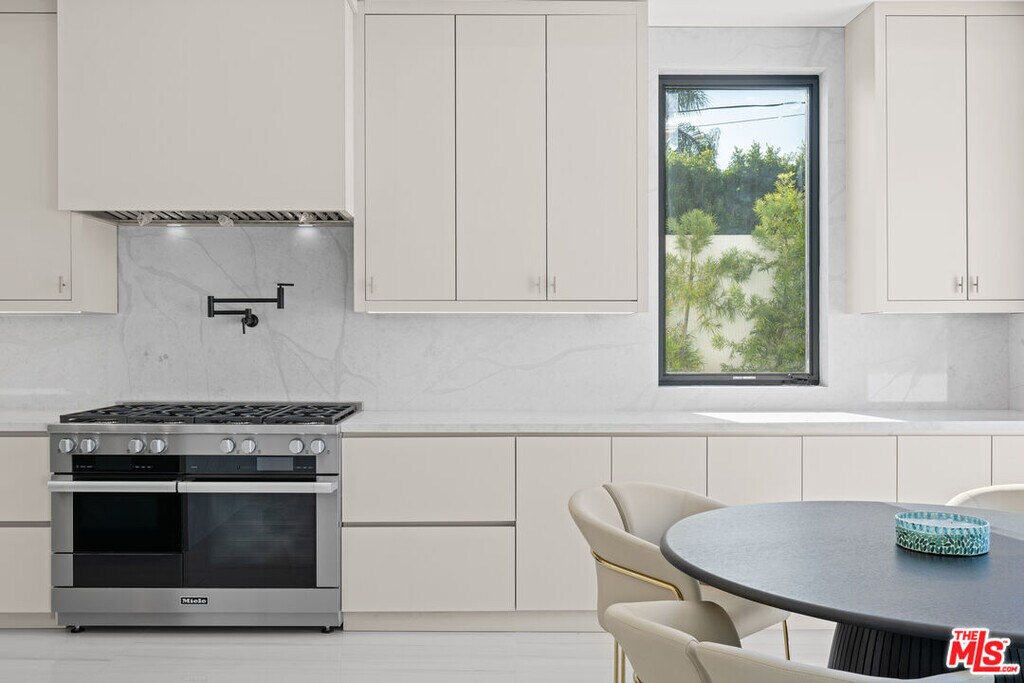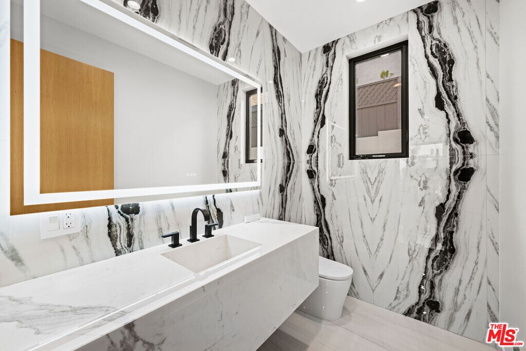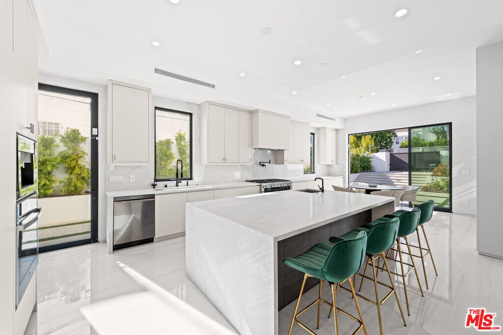 Exquisite Brand-New Contemporary Modern in Beverly Hills. Nestled in one of Beverly Hills' most sought-after neighborhoods, this brand-new contemporary modern residence offers an exceptional blend of sophisticated design, luxurious finishes, and state-of-the-art amenities. With striking curb appeal, expansive living spaces, and seamless indoor-outdoor flow, this home defines modern luxury.The open-concept floor plan is highlighted by 12-foot ceilings in the main living areas, creating a sense of grand volume. Expansive Fleetwood sliding windows and doors flood the space with natural light, while recessed lighting adds warmth and ambiance throughout. High-end finishes are evident at every turn, including Italian porcelain tile floors in the living areas and rich mahogany wood in all bedroom doors and floors. The chef's kitchen features Miele appliances, including a full-size refrigerator and freezer, an 8-burner stovetop, dual ovens, and a built-in espresso machine. A large central island provides ample space for meal prep and casual dining, and the kitchen flows effortlessly into the living and dining spaces perfect for entertaining guests or enjoying quiet family moments.Each of the home's bedrooms offers a serene retreat with spacious walk-in closets and spa-inspired bathrooms featuring custom finishes. The primary suite stands out with floor-to-ceiling sliding glass doors that open to a private balcony overlooking the pool and spa. The en-suite bathroom is a sanctuary, featuring an 8-jet soaking tub, a rain shower with steam, and sleek stone finishes.The expansive lower level includes a vast game room with 14-foot ceilings, ideal for a gym, home theater, or additional entertainment space. A full bar provides the perfect place to host guests, while the dedicated theater room offers a true cinematic experience. The fitness center is equipped to meet your every wellness need. An elevator ensures easy access to every level of the home.Outside, the beautifully landscaped grounds feature a stunning pool and spa with a waterfall feature, and a custom fire pit ideal for evening gatherings. The expansive backyard provides ample space for high-end entertaining or private relaxation. Smart home technology integrates lighting, climate control, security, and audio-visual systems, providing convenience at the touch of a button.Just moments from world-class shopping, dining, and entertainment, this property offers the ultimate in modern living, luxury, and convenience in one of the world's most prestigious locations. MLS# 26645371