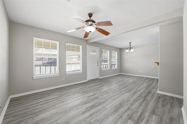 Hilltop Village Cottages is now leasing a spacious 3-bedroom, 2-bathroom home. This charming residence features fresh paint and luxury vinyl plank flooring throughout. Each bedroom is equipped with a ceiling fan for added comfort. The open floor plan includes a kitchen with ample cabinet space, fridge and a built-in desk area, making it perfect for both cooking and working from home. The master bathroom boasts a large walk-in closet, providing plenty of storage space. The primary bedroom is located on the ground floor, while two additional bedrooms and a full bathroom are situated upstairs. Enjoy the outdoors of the covered porch as this home is a must-see!