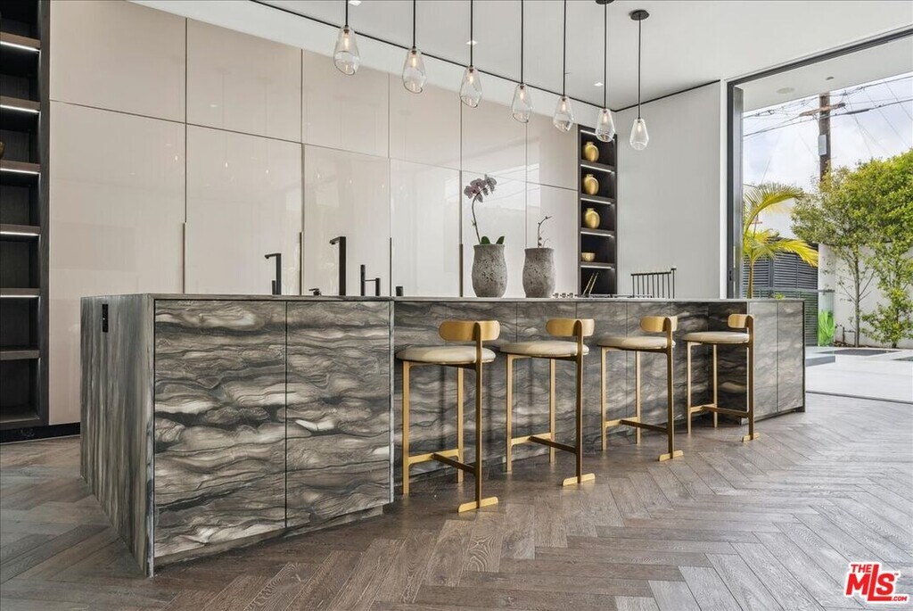 Fully Furnished! Discover this stunning modern estate in Beverly Hills, a privately gated architectural marvel that pairs striking contemporary design with turnkey convenience in one of the world's most glamorous cities. Immaculately designed and fully furnished by the renowned SIA Architects firm, every detail has been thoughtfully considered to create a seamless blend of beauty and comfort. Behind secure gates, soaring ceilings and expansive Fleetwood sliding doors flood the interiors with natural light, while exquisite custom floors add warmth and refinement. The open floor plan includes a formal dining room and two distinct living areas that extend effortlessly to the pool, barbecue, and outdoor loungeperfect for entertaining or unwinding in style. The gourmet kitchen boasts brand-new Miele appliances, sleek cabinetry, and generous prep space for both casual meals and lavish dinner parties. First-class amenities include a complete camera surveillance network, integrated home alarm system, automated privacy blinds, fireplaces, and comprehensive audio/visual wiring. Dual laundry stationsone upstairs and one in the basementadd convenience for busy households or extended stays. Upstairs, three bedrooms await, including a luxurious master suite with a spacious walk-in closet, spa-like bath, and private patio. A comfortable upstairs lounge offers flexible space for work or relaxation. The expansive basement spans over 2,000 square feet, featuring a full bar, live pond, movie room, game area, decorative wine display, and a private guest suite. Outdoors, the pool and barbecue lounge invite year-round enjoyment under the California sun, while thoughtful landscaping ensures privacy. Just a short stroll from world-class shopping and dining on Rodeo Drive, this extraordinary residence offers the rare combination of seclusion, sophistication, and proximity. Fully furnished and ready for immediate move-in, this is Beverly Hills living at its finest. MLS# 25594209