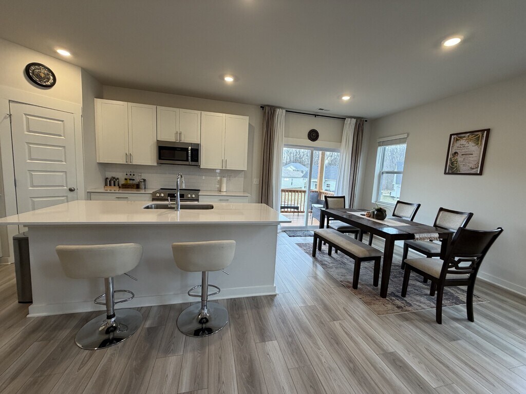 Welcome home to this like-new 4 bedroom, 2.5 bath home with an open and inviting layout! The spacious living area flows seamlessly into the kitchen and eat-in dining space, making it perfect for both everyday living and entertaining. The kitchen offers plenty of cabinet and counter space while staying connected to the main living area.The primary suite is conveniently located on the main floor and features a private en suite bath and a generous walk-in closet. Upstairs, you'll find additional bedrooms plus a versatile loft area—ideal for a home office, playroom, or second living space. Enjoy relaxing evenings on the covered deck overlooking a private backyard with no rear neighbors. Pets allowed (cats & dogs only, under 75lbs, 2 pets max, minimum 1 year old, $275 nonrefundable pet fee per pet & $35/month pet rent per pet). Tenant is responsible for verifying school districts/listing information. This home offers the space, comfort, and privacy you've been searching for—schedule your showing today!