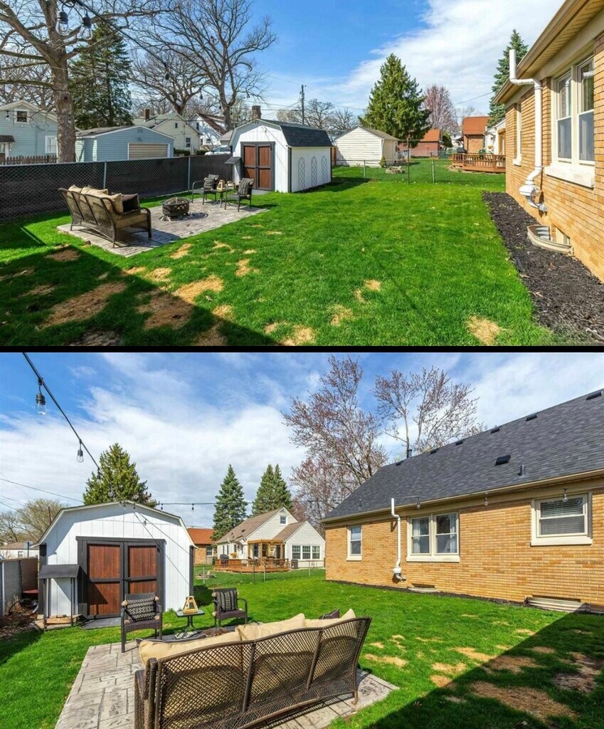 Farmhouse charm, modern comfort. This newly updated. unfurnished 2 bed / 1 bath home blends character with convenience: a bright kitchen with new appliances, plus thoughtful, aesthetic fixtures that tie the whole space together. W/ Bonus 3 seasons room! Storage is a standout! Enjoy a full-size unfinished attic waterproofed basement with washer & dryer and sectioned rooms to keep everything organized Outside, the 2-car garage offers alley and driveway access for easy in/out. A partially fenced yard adds privacy, and the gorgeous farmhouse utility shed is perfect for tools or Gardening gear