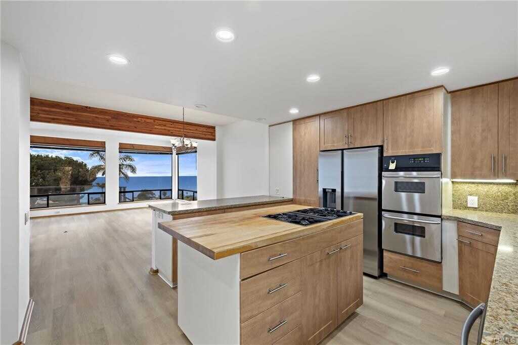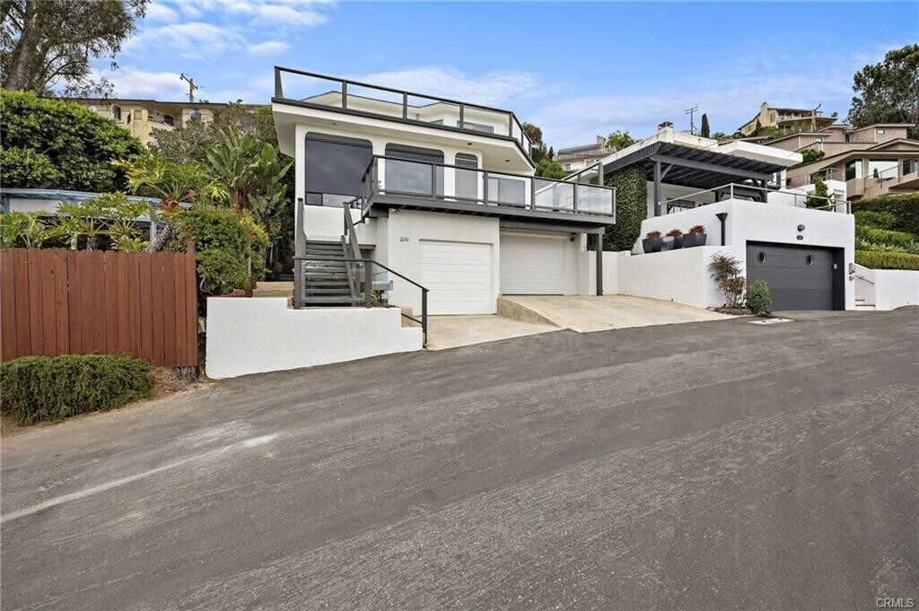 - Perched above the coastline in the coveted Woods Cove neighborhood, this contemporary residence captures sweeping ocean, Catalina, and coastline views from nearly every room. Designed with an emphasis on light and scenery, the home features expansive picture windows, multiple view decks, and a seamless indoor-outdoor flow. The main living area is filled with natural light and opens to a generous balcony, creating the perfect setting for sunset entertaining. The kitchen is appointed with warm wood cabinetry, granite counters, stainless steel appliances, and a butcher-block island with cooktop. Multiple outdoor spaces, including a terraced hillside garden and a private rear patio with stone walls, provide tranquil retreats surrounded by nature. Upstairs, the primary suite offers panoramic views and a bath with dual vanities, soaking tub, and separate shower. Additional bedrooms are well sized and versatile, ideal for guests or a home office. With two single car garages, off-street parking, and proximity to Laguna’s beaches, shops, galleries, and dining, this property presents an exceptional opportunity to enjoy the best of coastal living in one of the city’s most desirable enclaves. Listing provided by: Laura Baptista of Team Laguna Inc LA State License 1753586 Listing posted by Orange County [SYNDID 4137305 10122025]