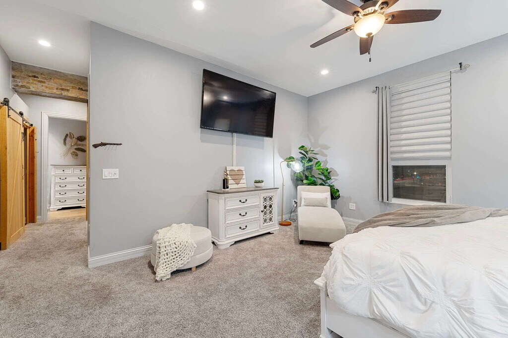 Welcome to the Chicago Mid-Century Gem, an extraordinary urban retreat located steps from the renowned United Center. Feel at home in this expansive home that offers four bedrooms and 3.5 bathrooms. This home is a masterpiece of design, offering a sprawling basement with a full bar, a rooftop deck featuring its own bar, and a generous garage. The main living space is designed for relaxation and socializing, featuring a spacious dining area adjacent to a chef's kitchen that's fully equipped. The family room includes a balcony and a 65-inch HD TV with a sound-bar. The master bedroom features a custom bathroom with a 2-person jetted tub, lights, music, and a waterfall, as well as a custom floor-to-ceiling California Closet. Additional features include a floating iron staircase with 3-inch walnut treads and a galley-style laundry area on the upper level. A 1200 sqft heated private garage with 22 by 14 garage doors accommodates a semi rig and includes 4 parking spaces, along with plenty of storage space and a half bathroom. This property is perfect for families or groups looking to experience the vibrant city of Chicago, offering beautiful views of the surrounding area. Quiet hours are between 10:00 PM and 8:00 AM. There is a $1,000 fine for parties or events, a $500 fine for smoking inside the apartment, and a $500 fine for tampering with noise monitors or cameras. Guests are liable for any damage to the property and should report any damages noticed at check-in. Registration Number: R2 [SI]
