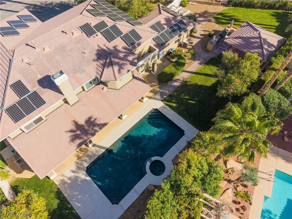 Stunning custom estate in the highly desirable Section 10 area, located within the intimate gated community of Alexa Breanne on a quiet cul de sac lot. Situated on nearly half an acre, this expansive home offers over 5,000 square feet with 6 spacious bedrooms and 6 bathrooms. Beautiful exterior brickwork and amazing professional landscaping create exceptional curb appeal. Inside, the home features newer custom cabinets, granite countertops, stainless steel appliances, and multiple living and entertaining spaces. Enjoy a dedicated movie room complete with theater seating and equipment, along with a game room featuring a pool table. The backyard is built for entertaining with a sparkling pool and spa, cabana, outdoor kitchen, and multiple covered patio areas surrounded by lush landscaping. Additional highlights include owned solar providing energy efficiency benefits, Tesla charging station, and pool and landscape services included for a truly effortless luxury living experience.