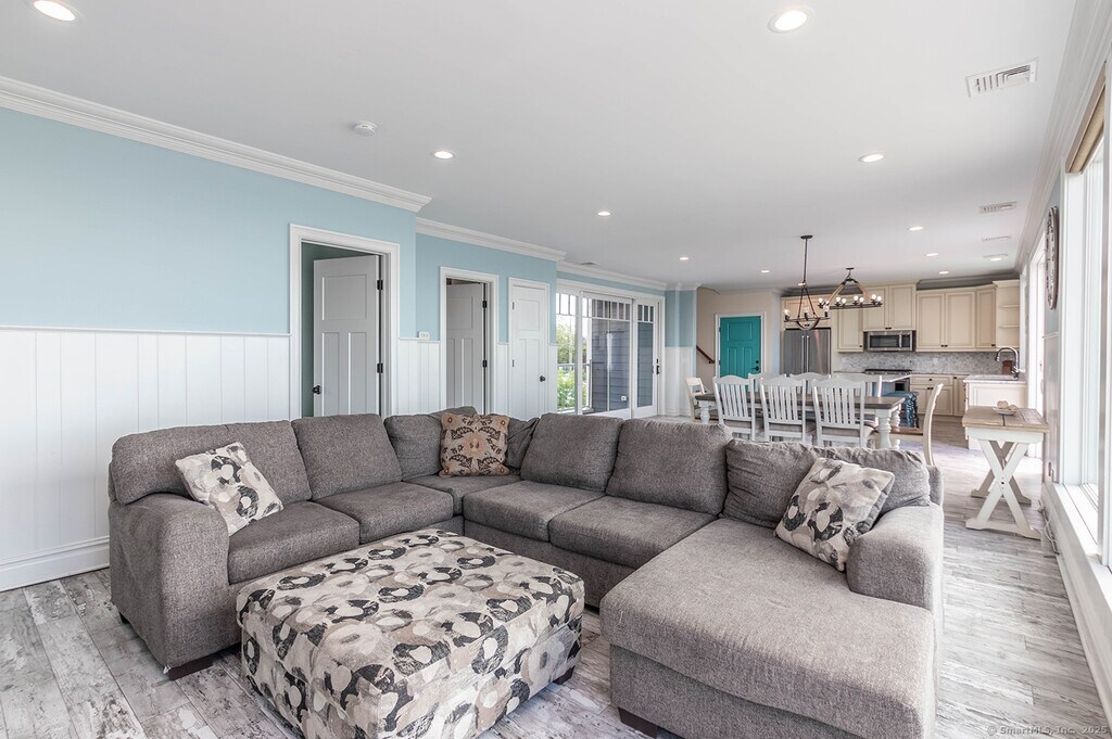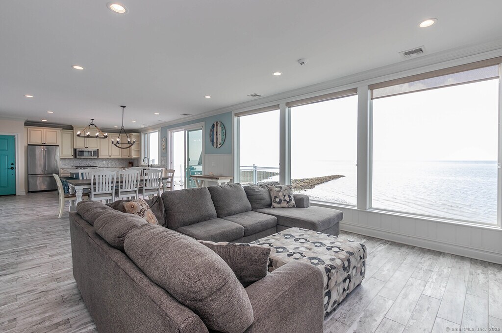 Call for Availability - Indulge in breathtaking views stretching all the way to New York from this remarkable abode! Parking is never a concern with the expansive 6-car garage, ensuring ample space for guests. Crafted with meticulous attention to detail, this home is designed for serenity, leisure, and enjoyment under the sun or in the shade of charming covered umbrellas. Take your pick of decks – whether it's the terrace level with sand front, the second floor, or the top floor, each offering its unique ambiance. Inside, an airy open floor plan seamlessly connects the kitchen, dining, and living areas, all adorned with mesmerizing water vistas that are simply unparalleled. Nestled on Fairfield Beach Rd, this residence boasts the ultimate waterfront lifestyle. The second floor unveils a waterfront Primary Suite, complete with a luxurious spa-like master bath featuring a separate shower and indulgent soaking tub, along with a private office and two additional bedrooms serviced by a full bathroom. On the main level, discover a bedroom overlooking FBR, a convenient pantry closet, another full bathroom, and immaculate open living spaces. Ascend to the top floor to find a sun-drenched sundeck at the Southend of a vast bonus room, perfect for relaxation and recreation. Seize the opportunity to make 2131 Fairfield Beach your home, where luxury meets coastal living. House is furnished. MLS# 24127099